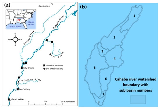 - Graves, P.H.; Ward, G.M. Mayfly and stonefly distribution in the mainstem Cahaba River, Alabama. Southeast. Nat. 2011, 10, 477–488. [Google Scholar] [CrossRef]