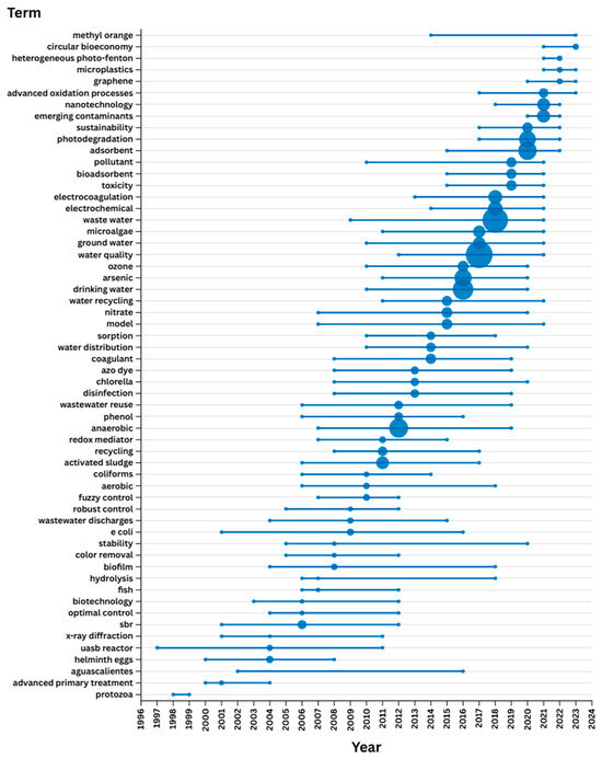 Water treatment research trend topics (Created with https://flourish.studio/, accessed on 15 November 2024).