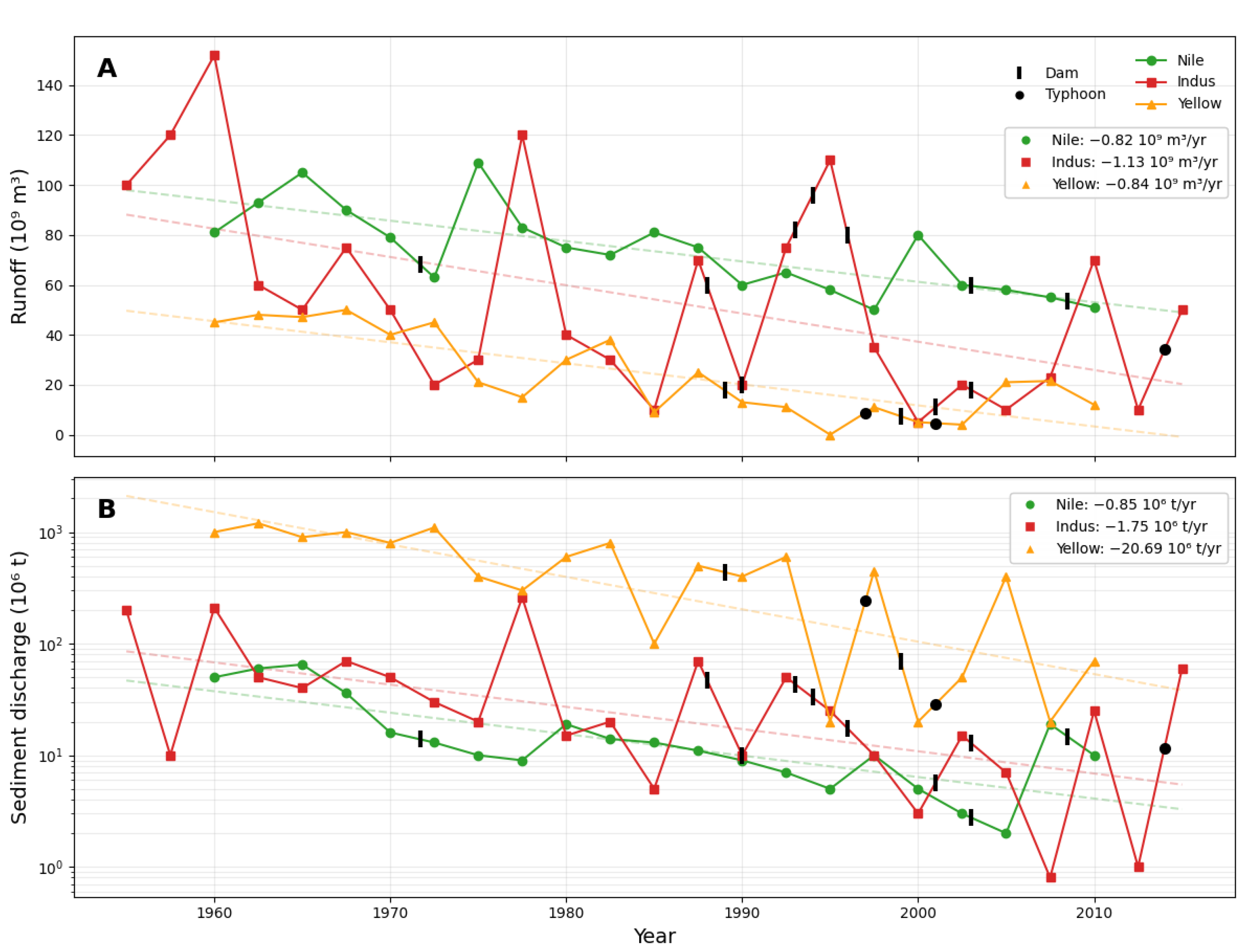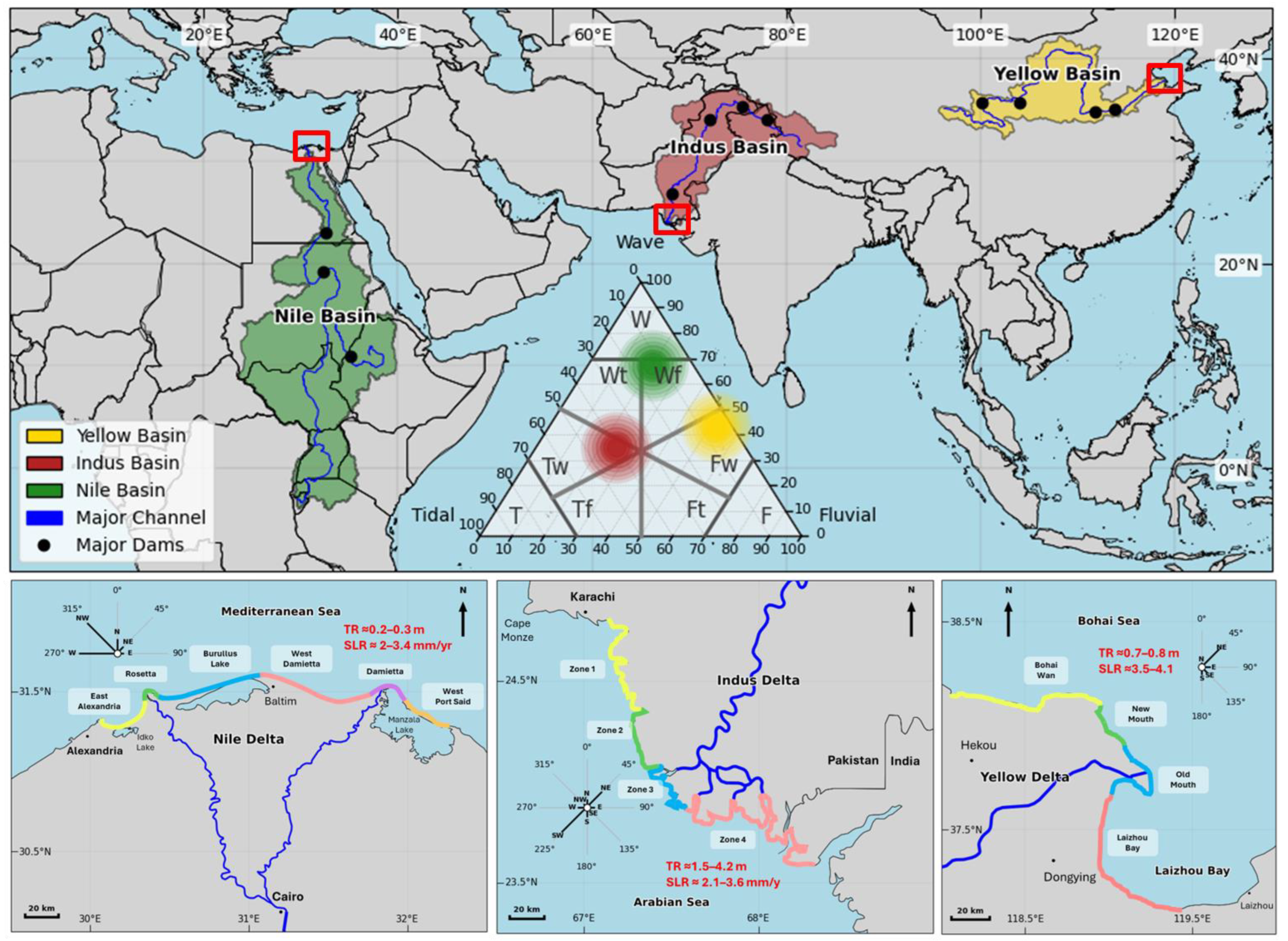 Risha M, Liu P. Event-Driven Shoreline Dynamics of the Nile, Indus, and Yellow River Deltas: A 50-Year Analysis of Trends and Responses. Earth. 2025; 6(4):120. https://doi.org/10.3390/earth6040120