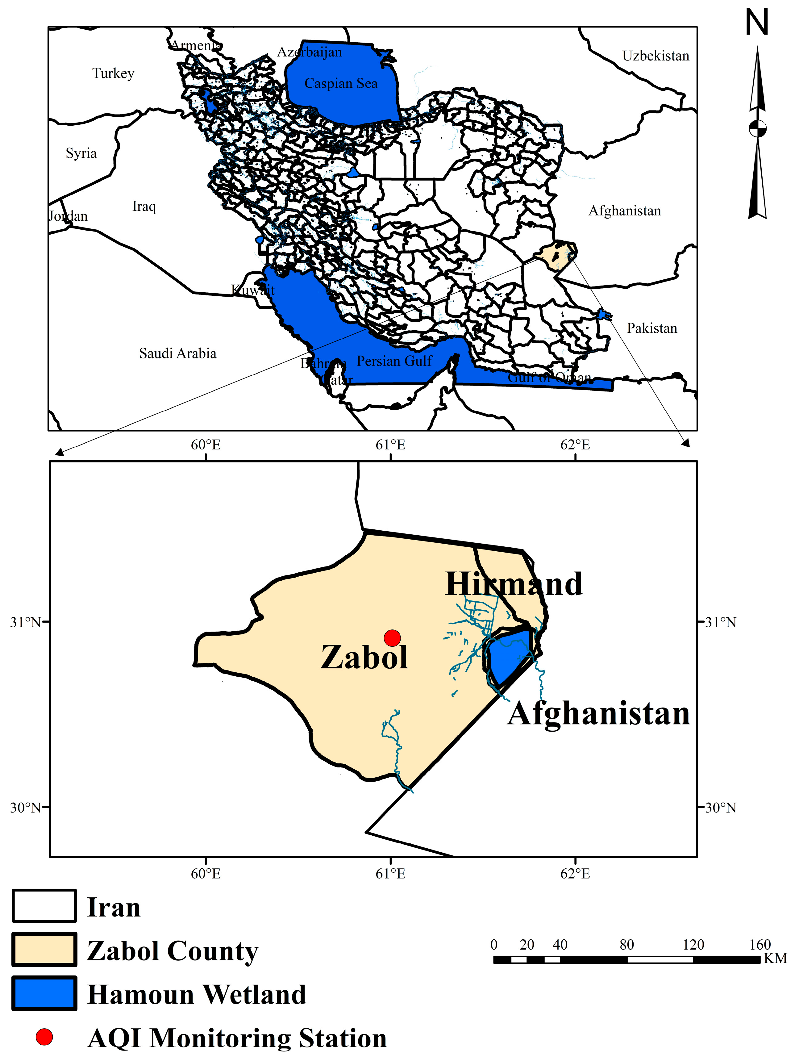 37]. Zabol is strongly affected by the “120-day wind” (Levar), a persistent summer wind system that transports large volumes of mineral dust from the desiccated Hamoun basin into urban and rural environments [