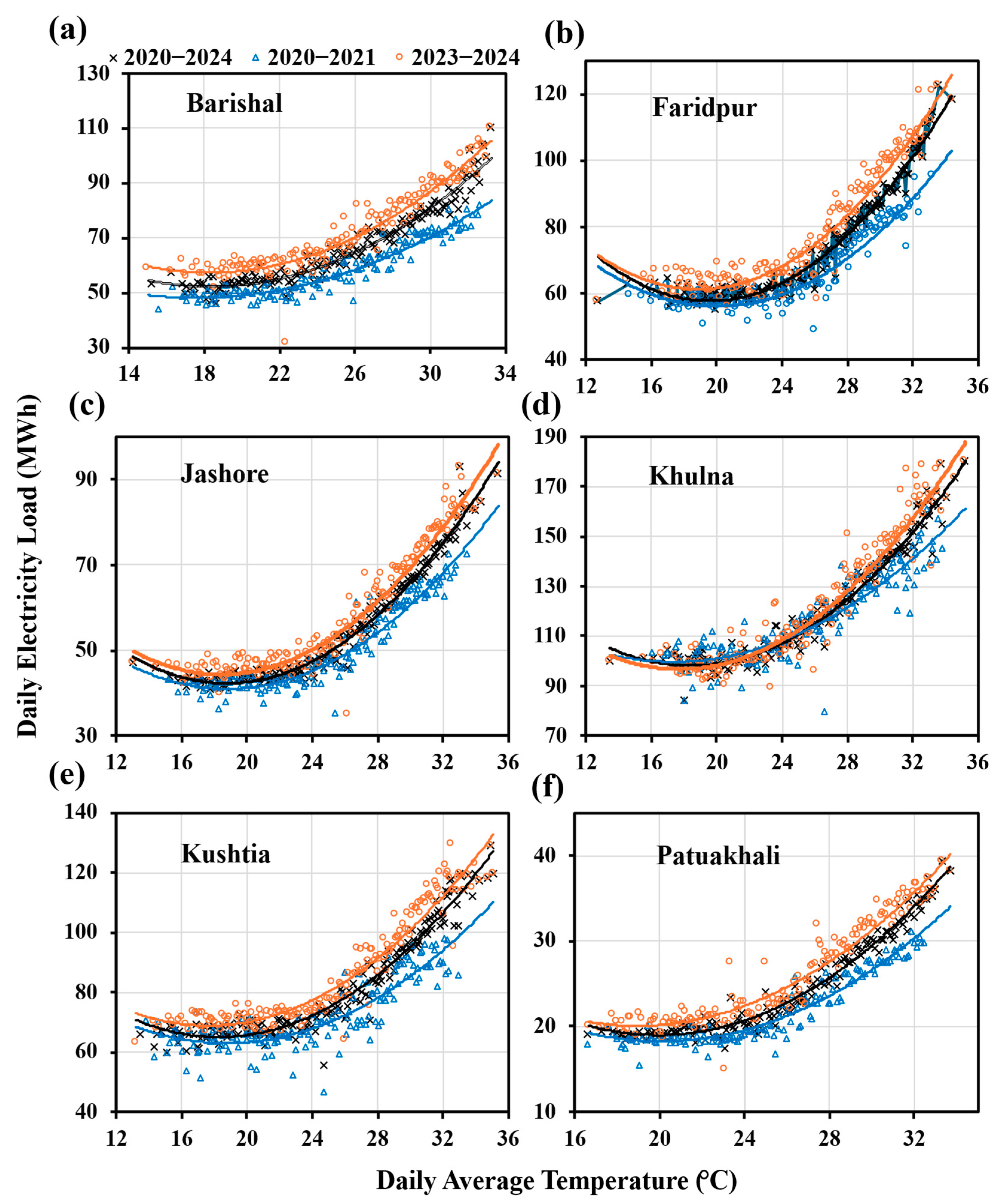 - Sub-regions such as Khulna and Kushtia exhibited a flattening of demand sensitivity, likely showing how load-shedding and supply-side constraints can mask underlying climate-driven demand patterns, pointing to the importance of infrastructure capacity.