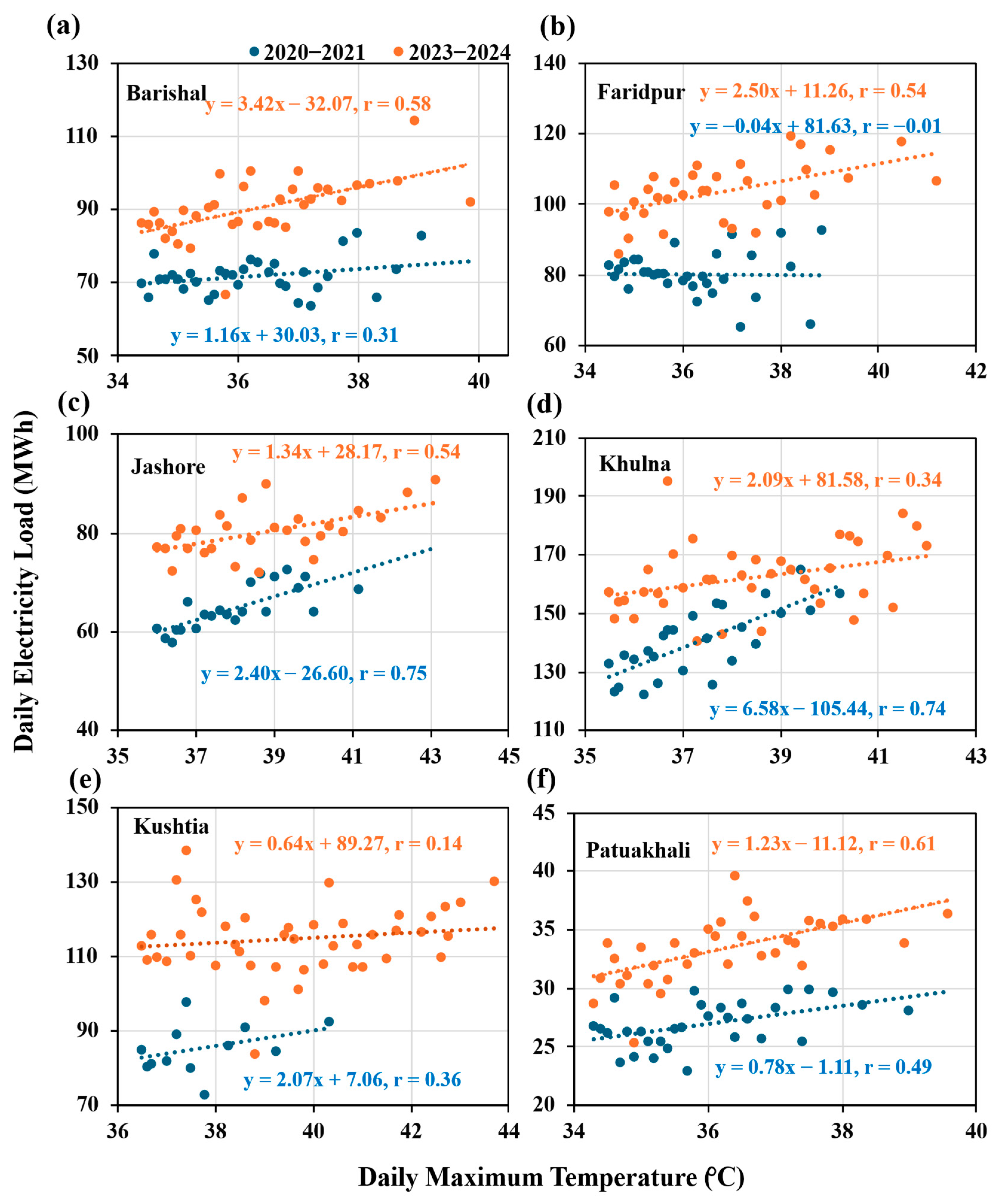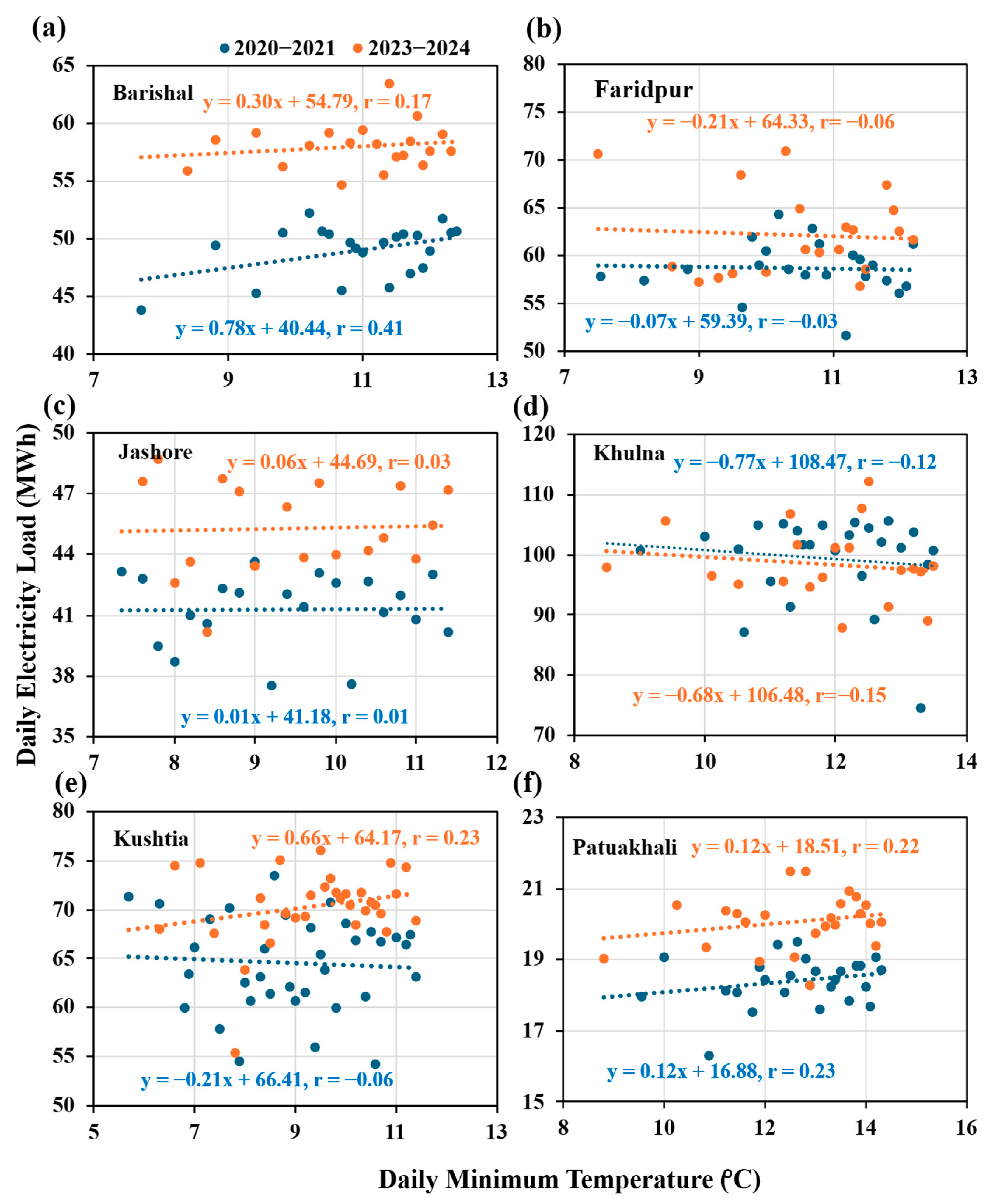 - Between 2020 and 2024, a marked upward shift in the temperature–demand relationship was detected, linked to growing baseline demand from socio-economic development, rising population, and greater appliance usage.