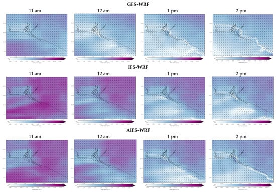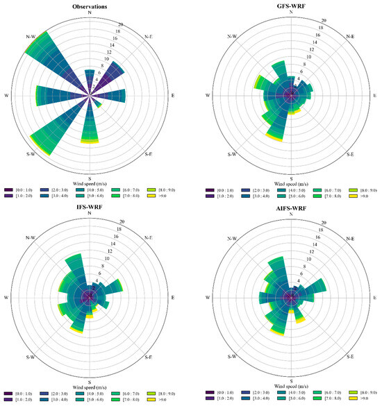 Three different global models were used to provide initial conditions and LBCs for the WRF mesoscale simulations: GFS, IFS, and AIFS.