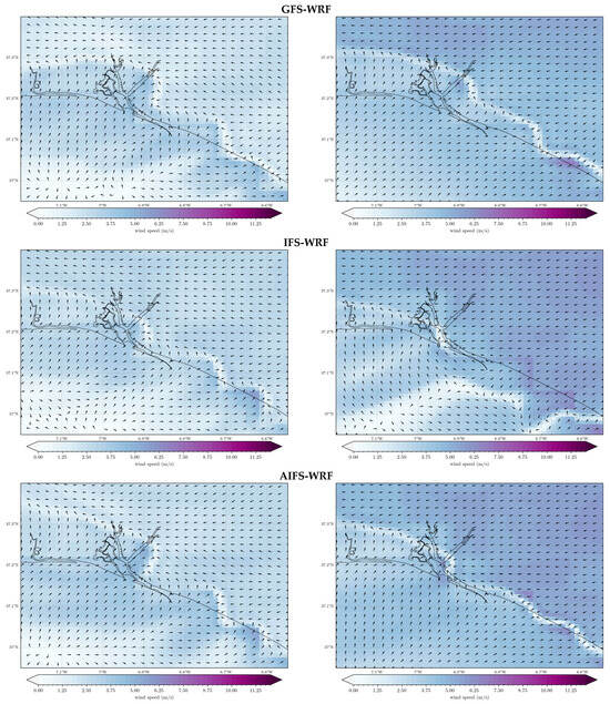 IFS and AIFS are supplied by ECWMF (https://data.ecmwf.int/ (accessed on 27 May 2025)) also with a spatial resolution of 0.25°. IFS is updated every 12 h (00 and 12 UTC), and AIFS every 6 h (00, 06, 12 and 18 UTC).