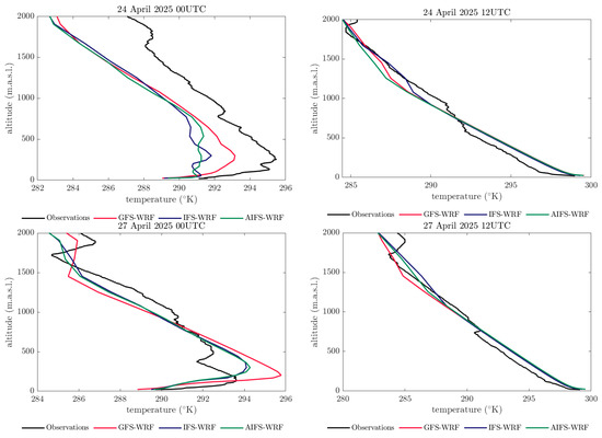 To assess the sensitivity of the simulations with respect to vertical profiles within the planetary boundary layer (PBL), radiosonde data have been incorporated into the analysis. Specifically, upper-air meteorological measurements obtained from radiosonde launches conducted by AEMET (location indicated in Figure 1) were considered.