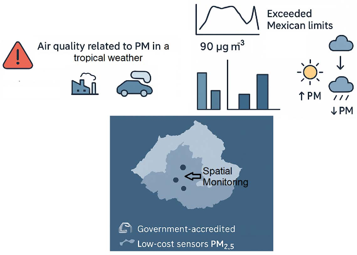 Quintal-Franco CA, Mendicuti-Ramos A, Ponce-Caballero C, Góngora-Echeverría VR, Aguilar-Escalante S. Spatial and Temporal Evaluation of PM10 and PM2.5 in the Tropical Weather City Context: Effect of Environmental Parameters and Fixed-Pollution Sources. Earth. 2025; 6(4):133. https://doi.org/10.3390/earth6040133
