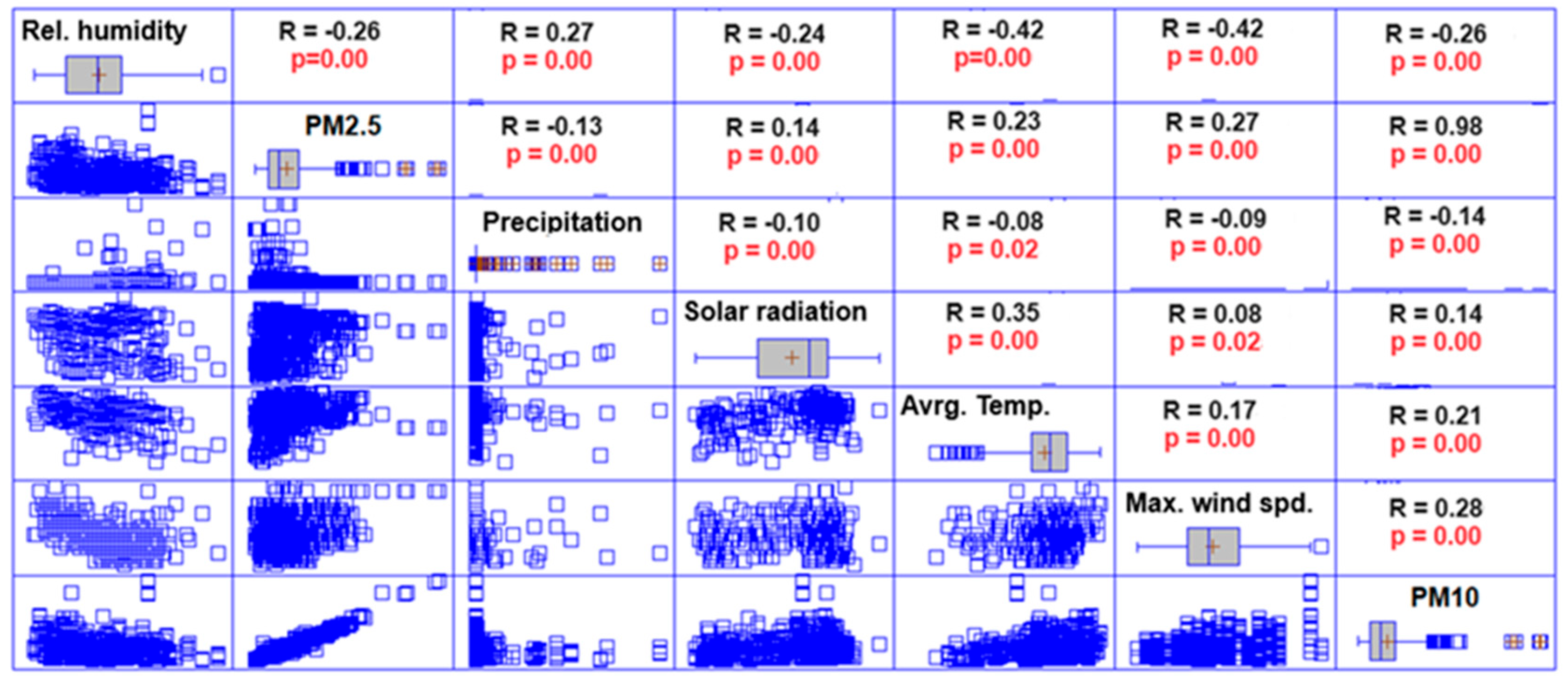 - Zhang, X.; Xu, H.; Liang, D. Spatiotemporal Variations and Connections of Single and Multiple Meteorological Factors on PM2.5 Concentrations in Xi’an, China. Atmos. Environ. 2022, 275, 119015. [Google Scholar] [CrossRef]