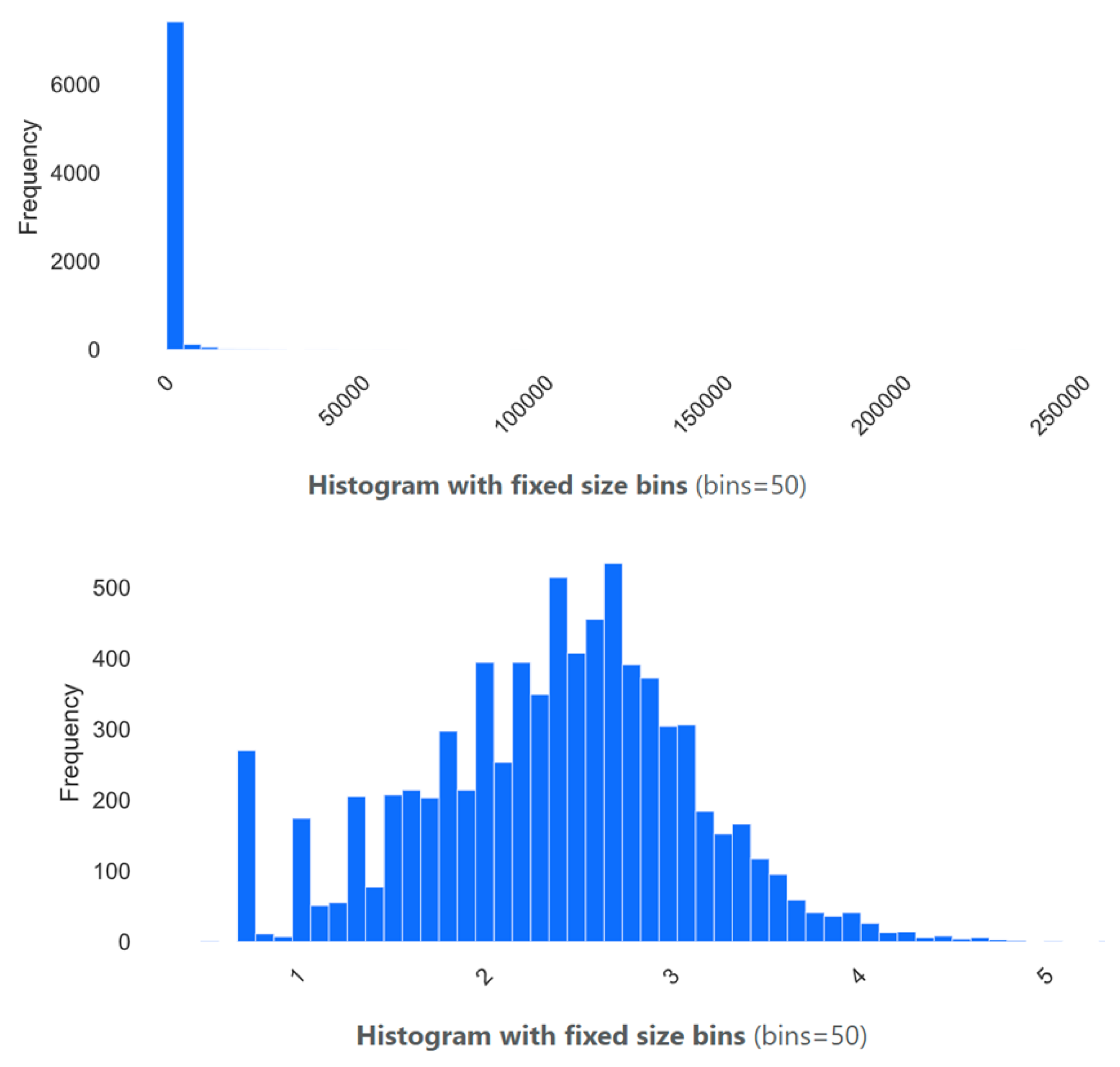 The coefficient of variation decreased from 4.45 to 0.31, and the standard deviation dropped from 4092.22 to 0.73, reflecting a significant reduction in variability relative to the mean. Additionally, extreme values no longer dominate the distribution: the interquartile range (IQR) shrinks from 610 to 0.94, and the range reduces from 239,997 to 4.90. These changes suggest that the log-transformed data is not only easier to visualize but also more appropriate for statistical analysis and modeling, especially under assumptions of normality or homoscedasticity.