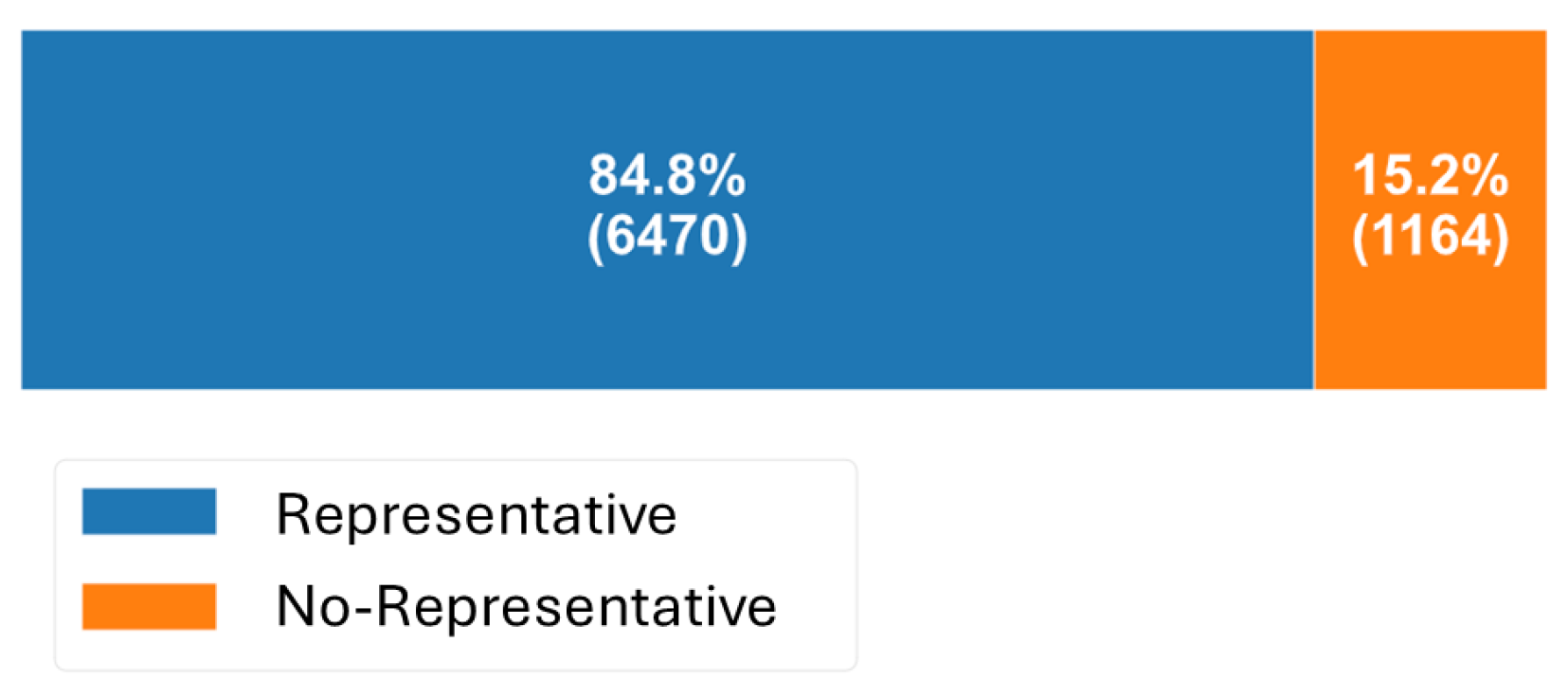 Regarding sample representativeness, 84.8% of the water quality measurements were labeled as