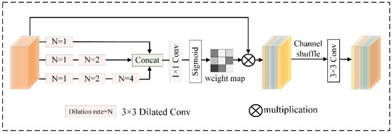 where denotes the input feature map and represents the 3 × 3 dilated convolution operation with a dilation rate of .