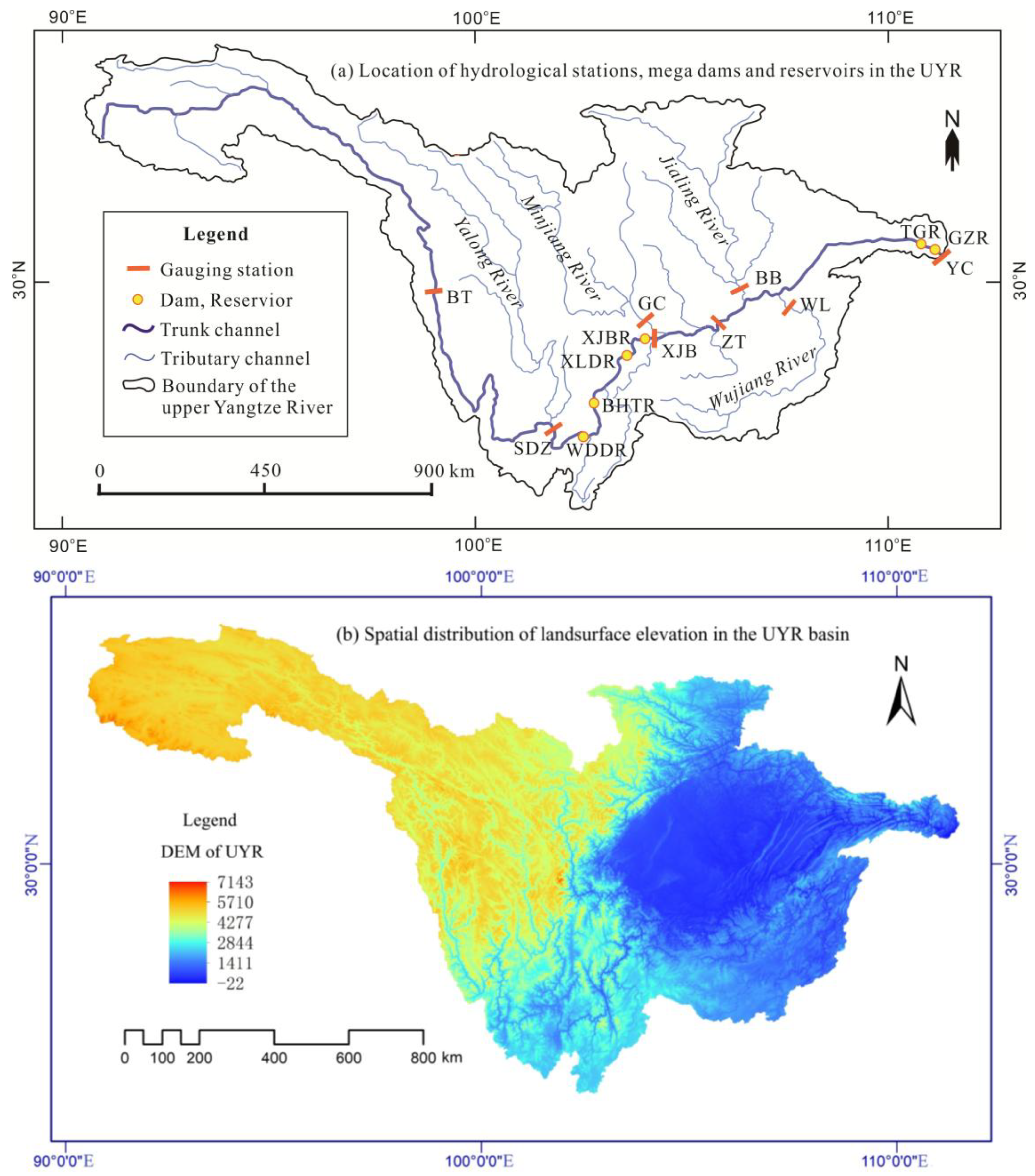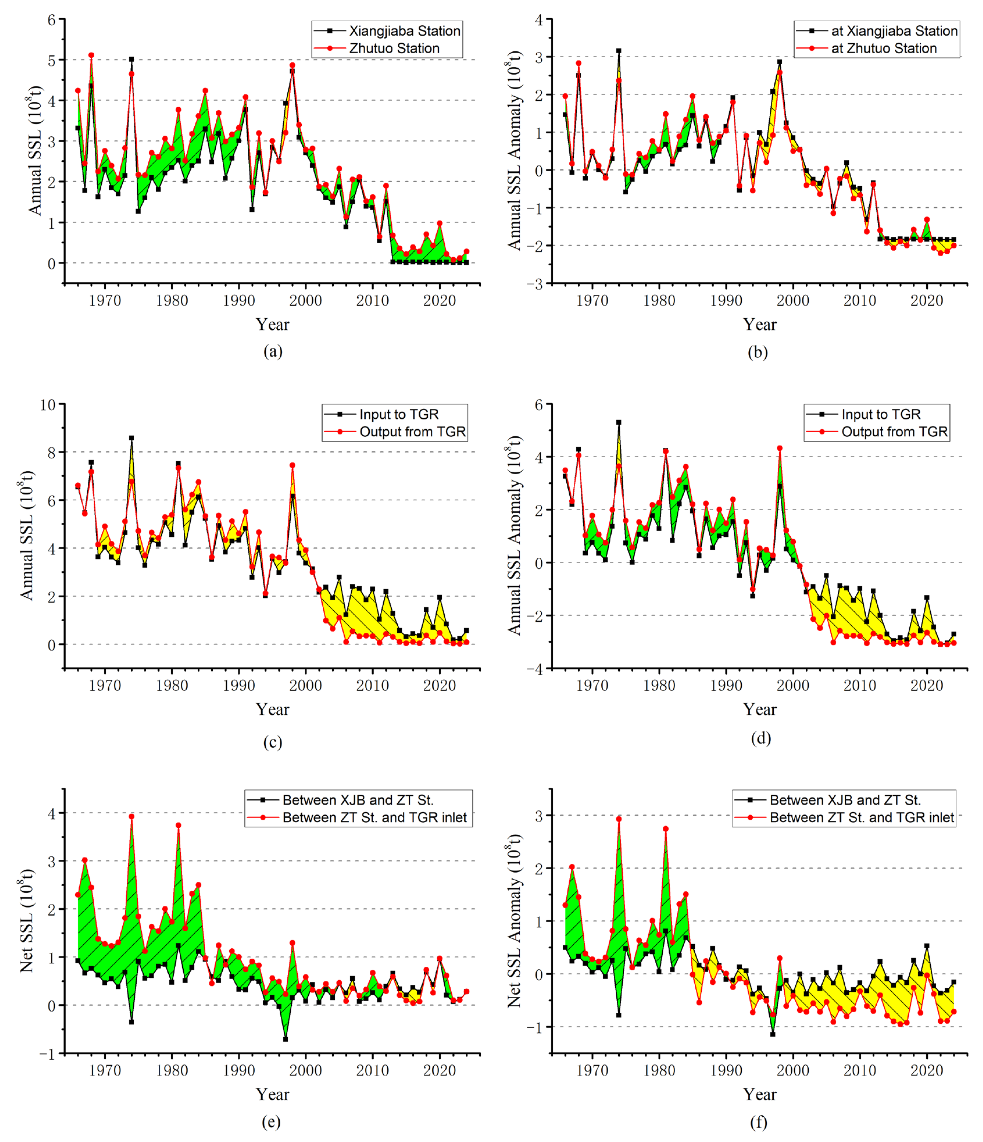 - Sun, J.; Wang, G.; Sun, S.; Chen, S.; Sun, X.; Wang, Y.; Sun, H.; Song, C.; Lin, S.; Hu, Z. Asynchronous changes and driving mechanisms of water-sediment transport in the Jinsha River Basin: Response to climate change and human activities. Catena 2025, 259, 109325. [Google Scholar] [CrossRef]