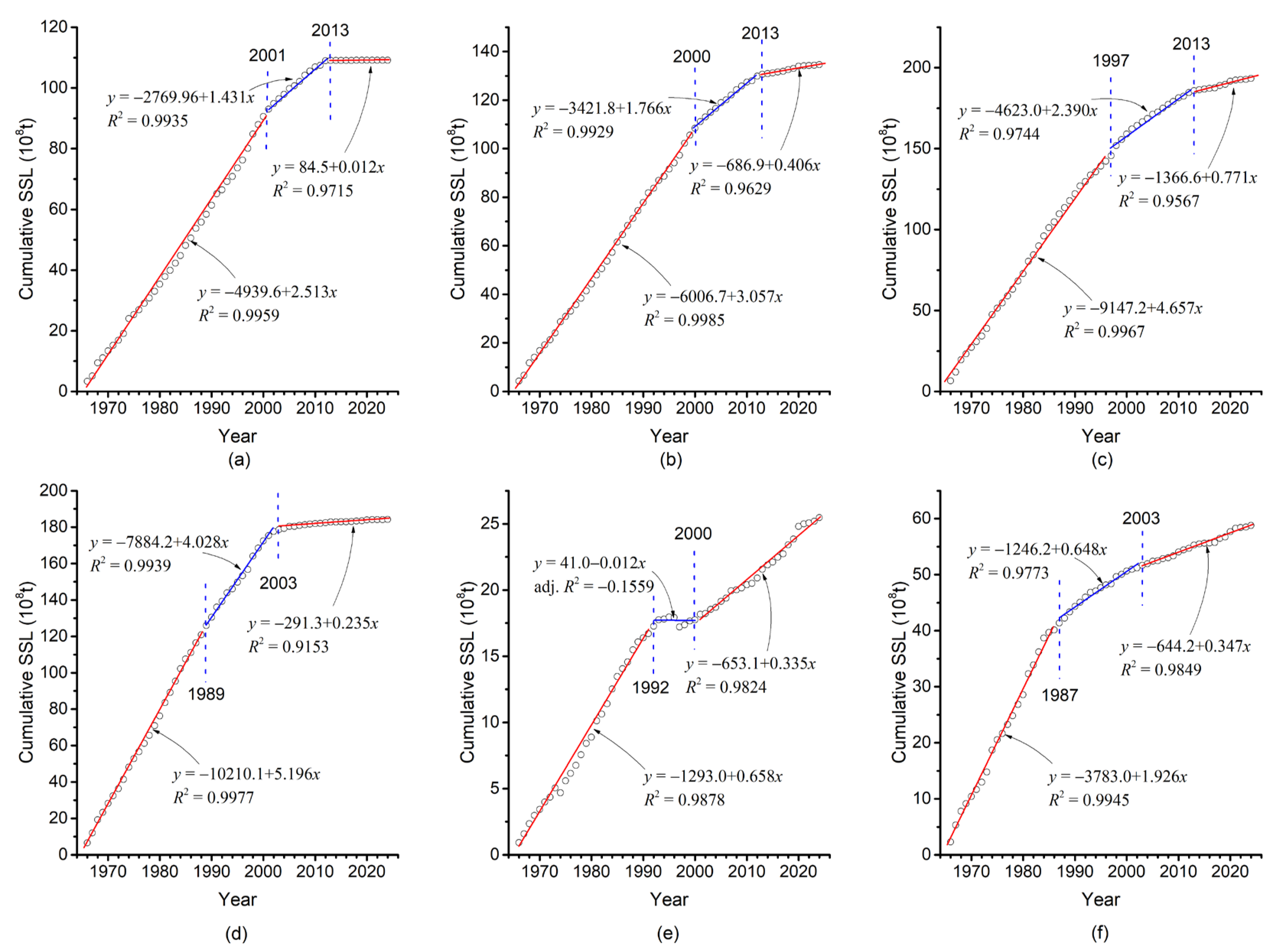 3.3.1. Relationships Between the Year and Cumulative SSL