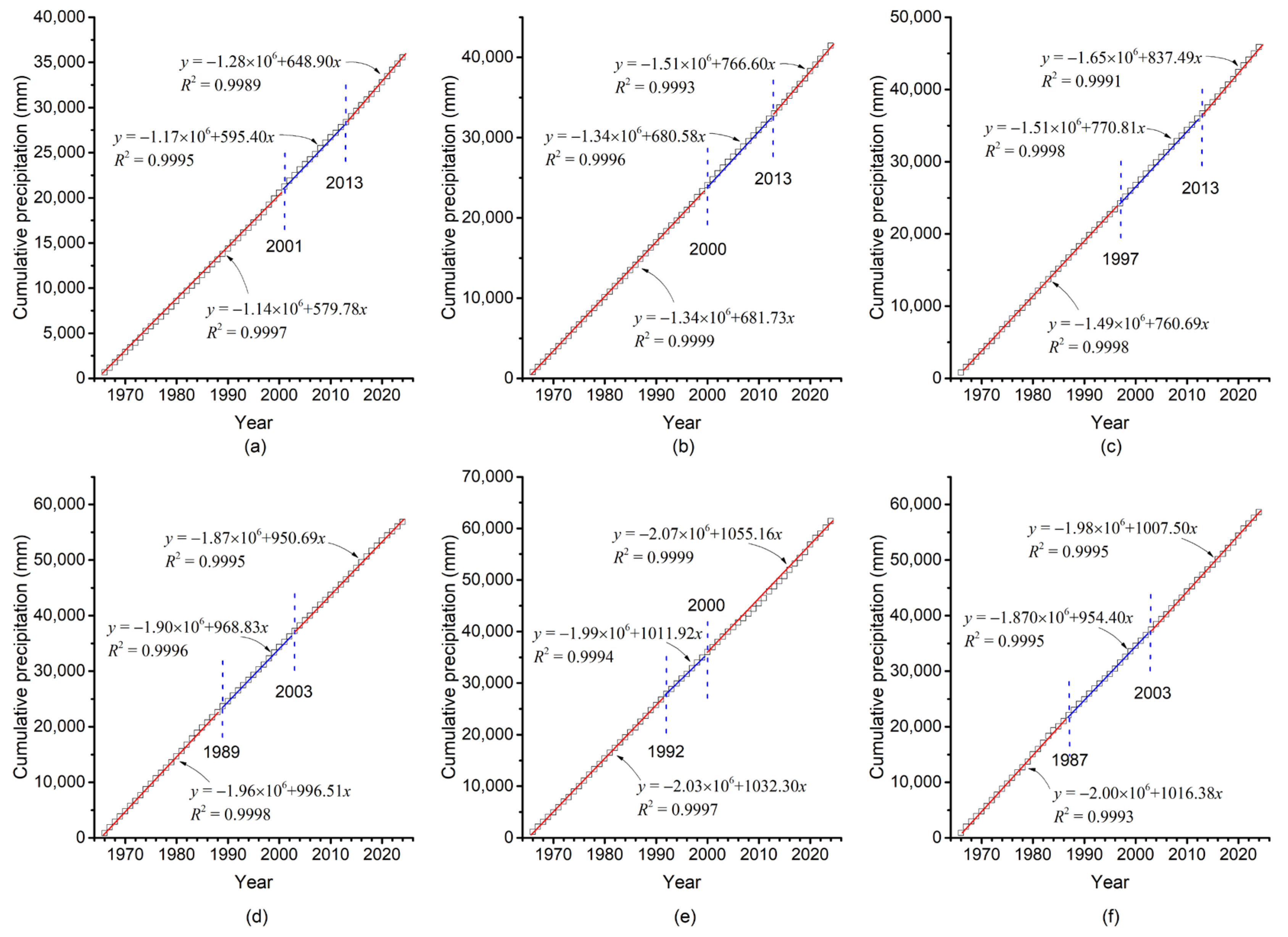 - Mu, X.M.; Zhang, X.Q.; Gao, P.; Wang, F. Theory of double mass curves and its applications in hydrology and meteorology. J. China Hydrol. 2010, 30, 47–51. (In Chinese) [Google Scholar]