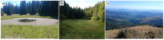 Natural Heritage Sites in Golija: (a) Dajićko Lake; (b) Košanin’s Lake; (c) Ispod Jankovog Kamena.