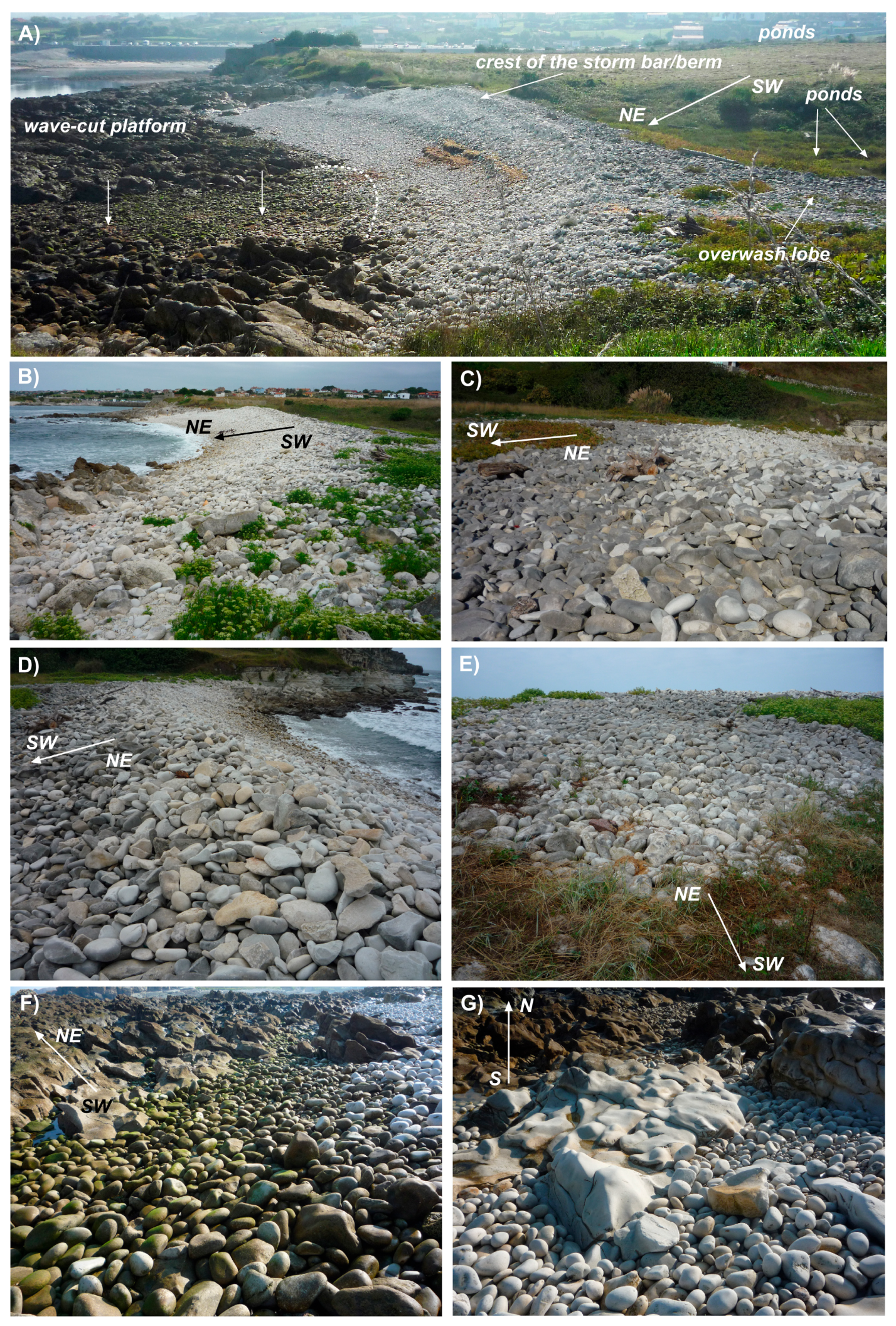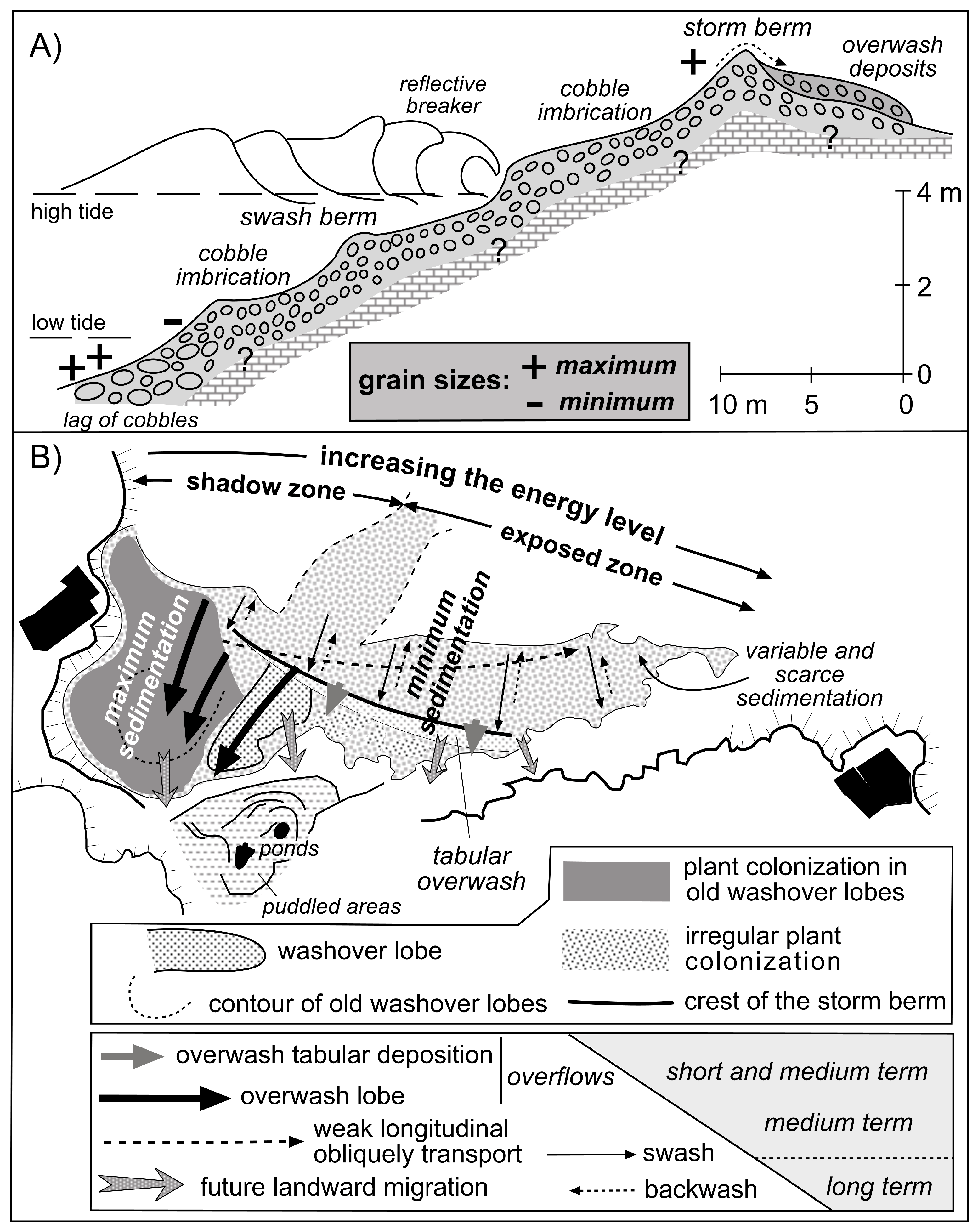 - Anthony, E.J. Chapter Six Gravel Beaches and Barriers. Dev. Mar. Geol. 2008, 4, 289–324. [Google Scholar] [CrossRef]