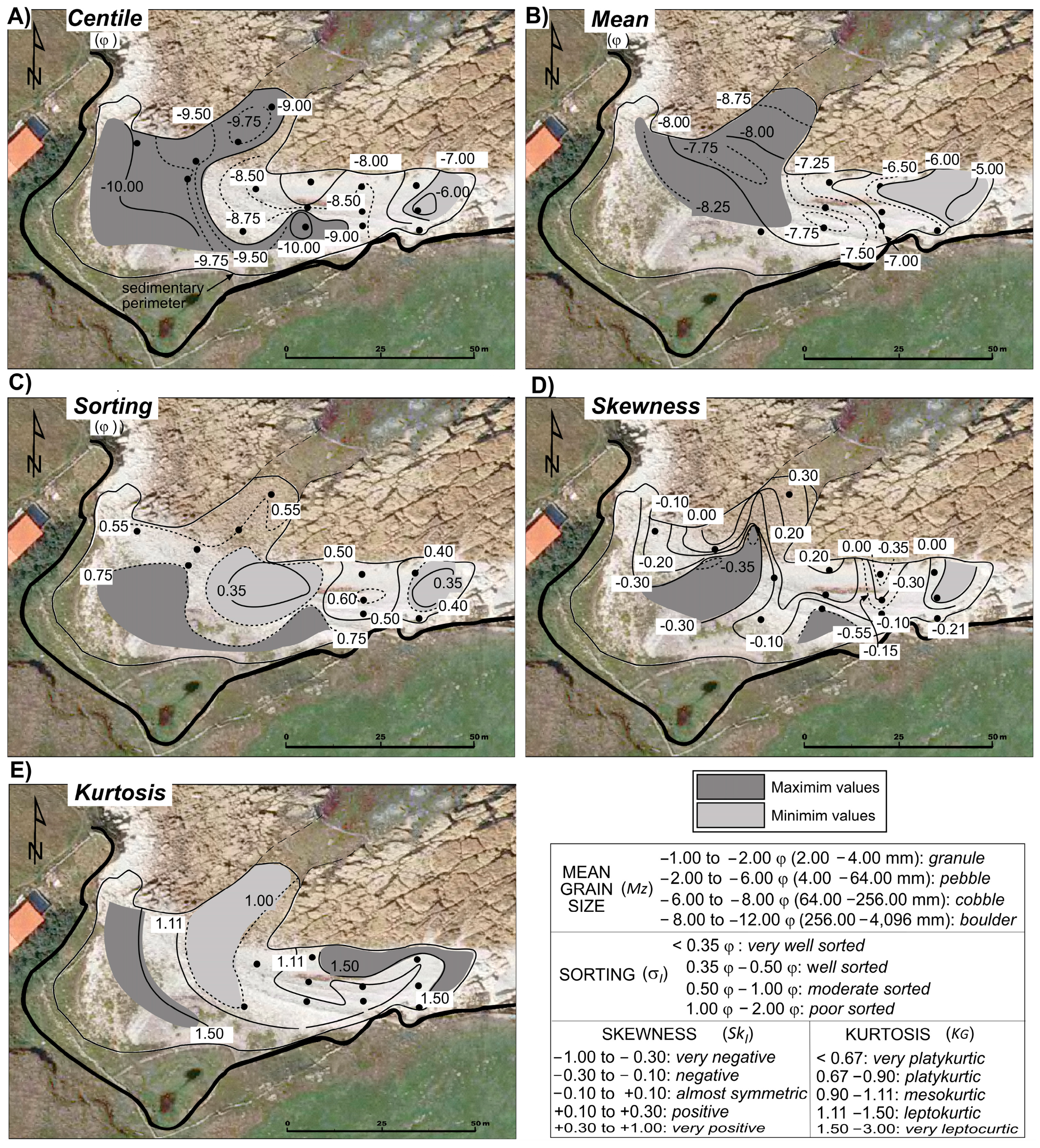 - Folk, R.L. A Review of Grain-Size Parameters. Sedimentology 1966, 6, 73–93. [Google Scholar] [CrossRef]