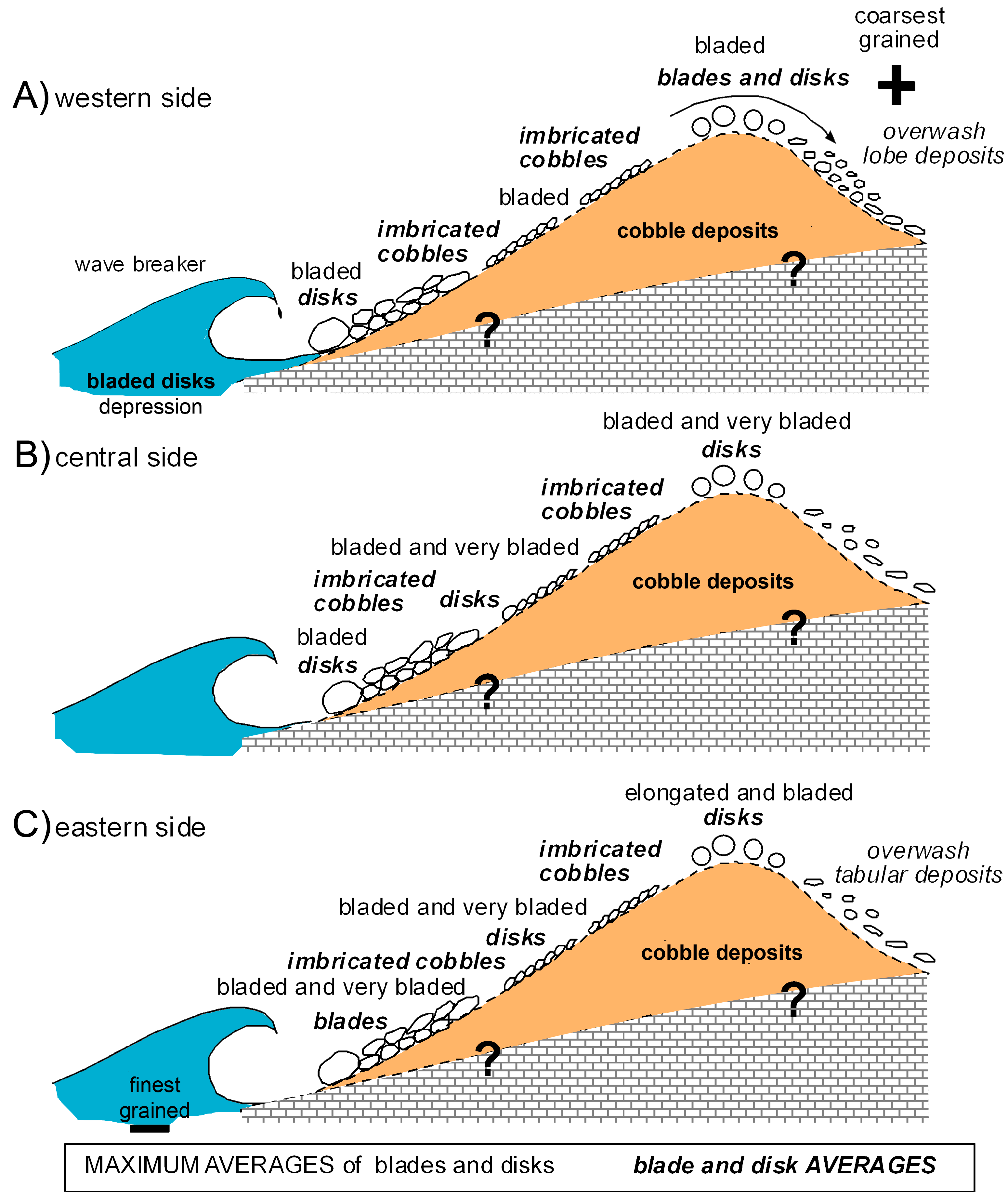 - Tanner, L.H. Gravel Imbrication on the Deflating Backshores of Beaches on Prince Edward Island, Canada. Sediment. Geol. 1996, 101, 145–148. [Google Scholar] [CrossRef]