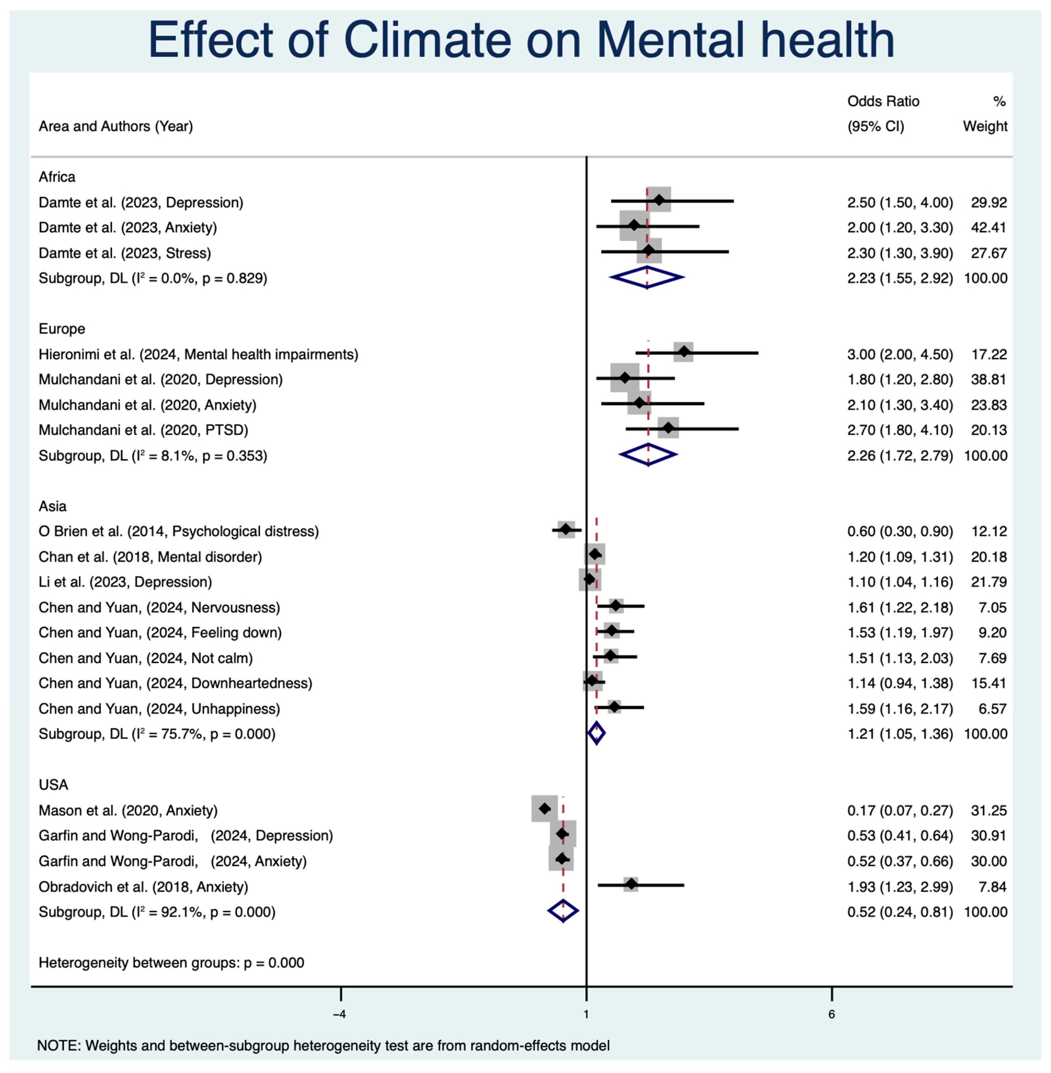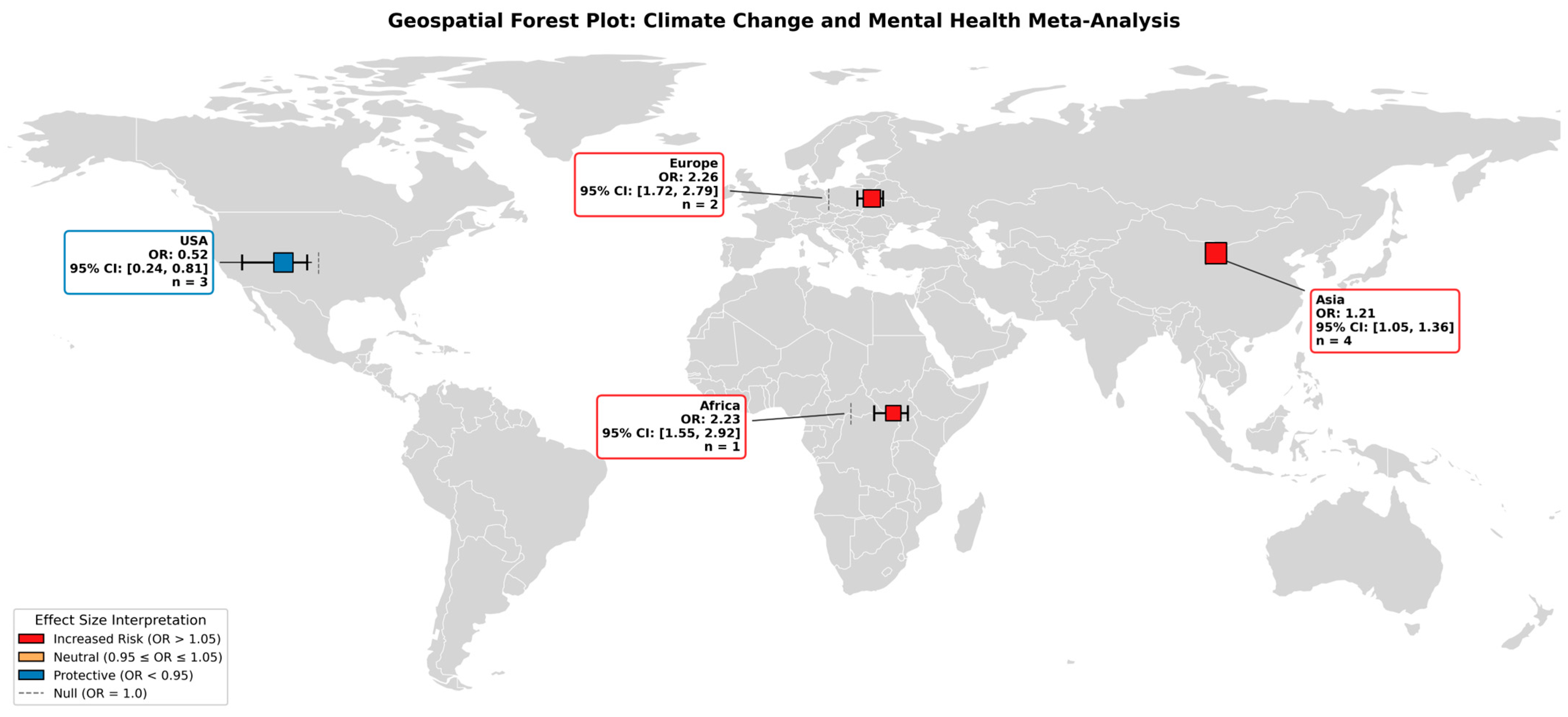 Chicago/Turabian StyleAmnuaylojaroen, Teerachai, Nichapa Parasin, and Surasak Saokaew. 2026. "Climate-Related Extreme Weather and Urban Mental Health: A Traditional and Bayesian Meta-Analysis" Earth 7, no. 1: 14. https://doi.org/10.3390/earth7010014