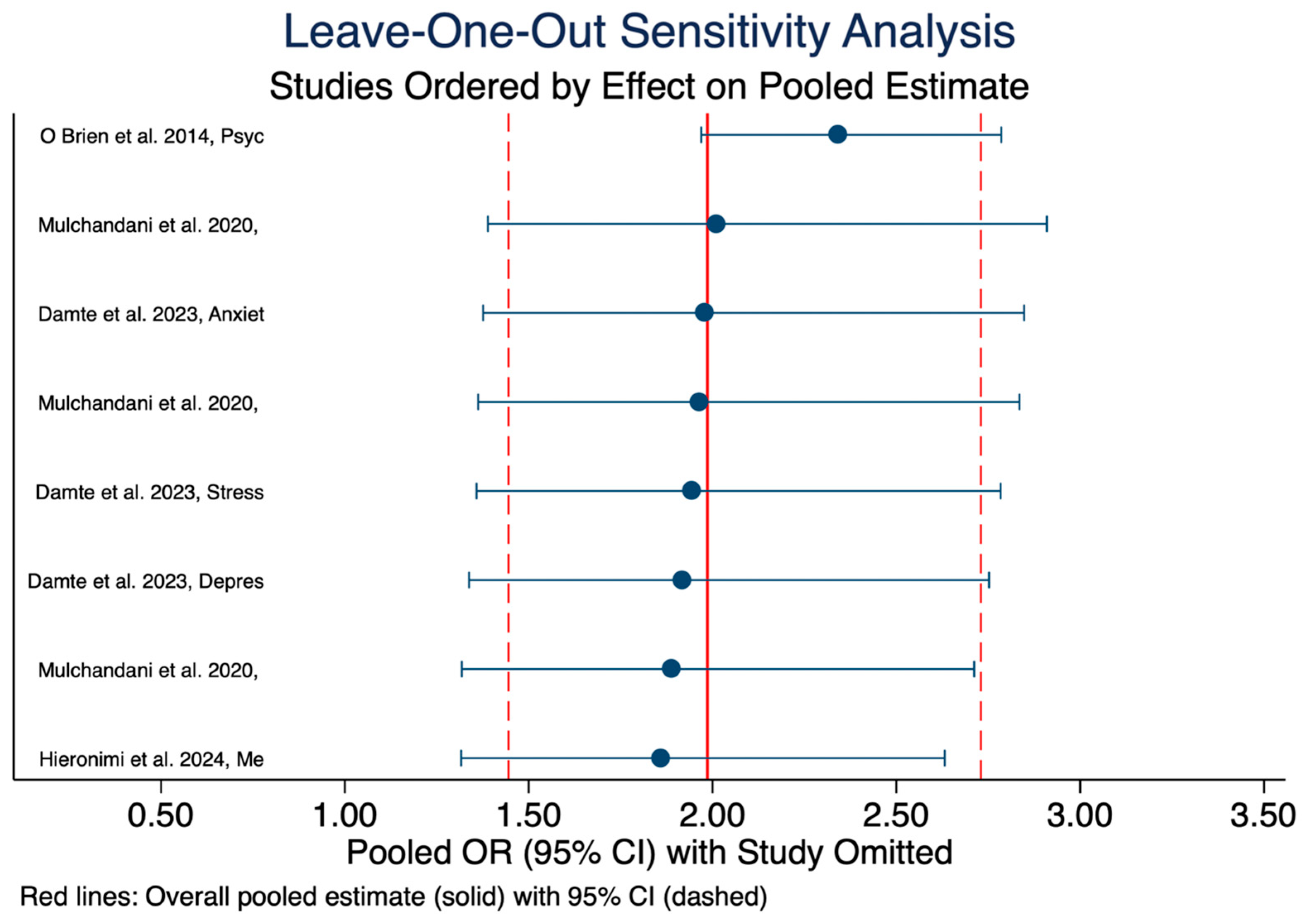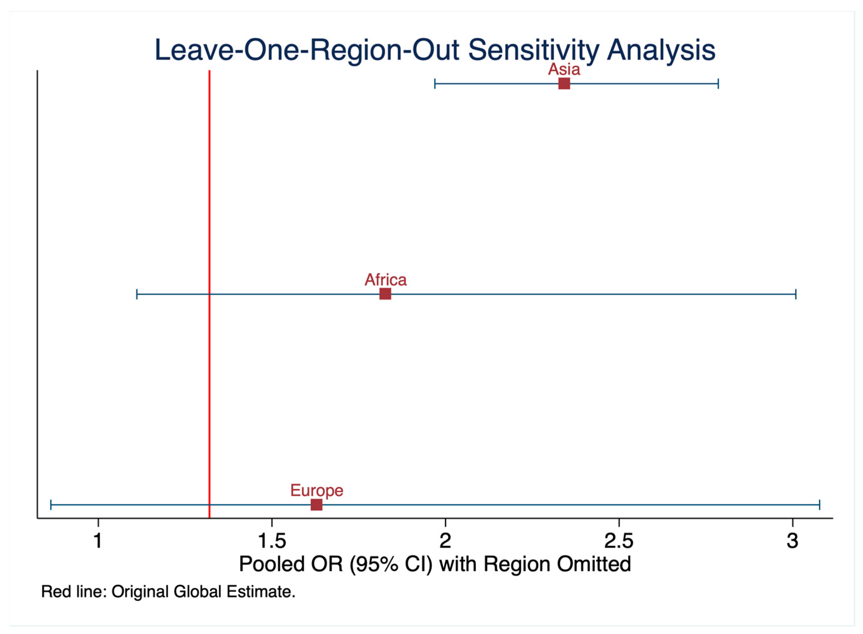 3.4.3. Meta-Regression, Sensitivity, and Bias Assessment