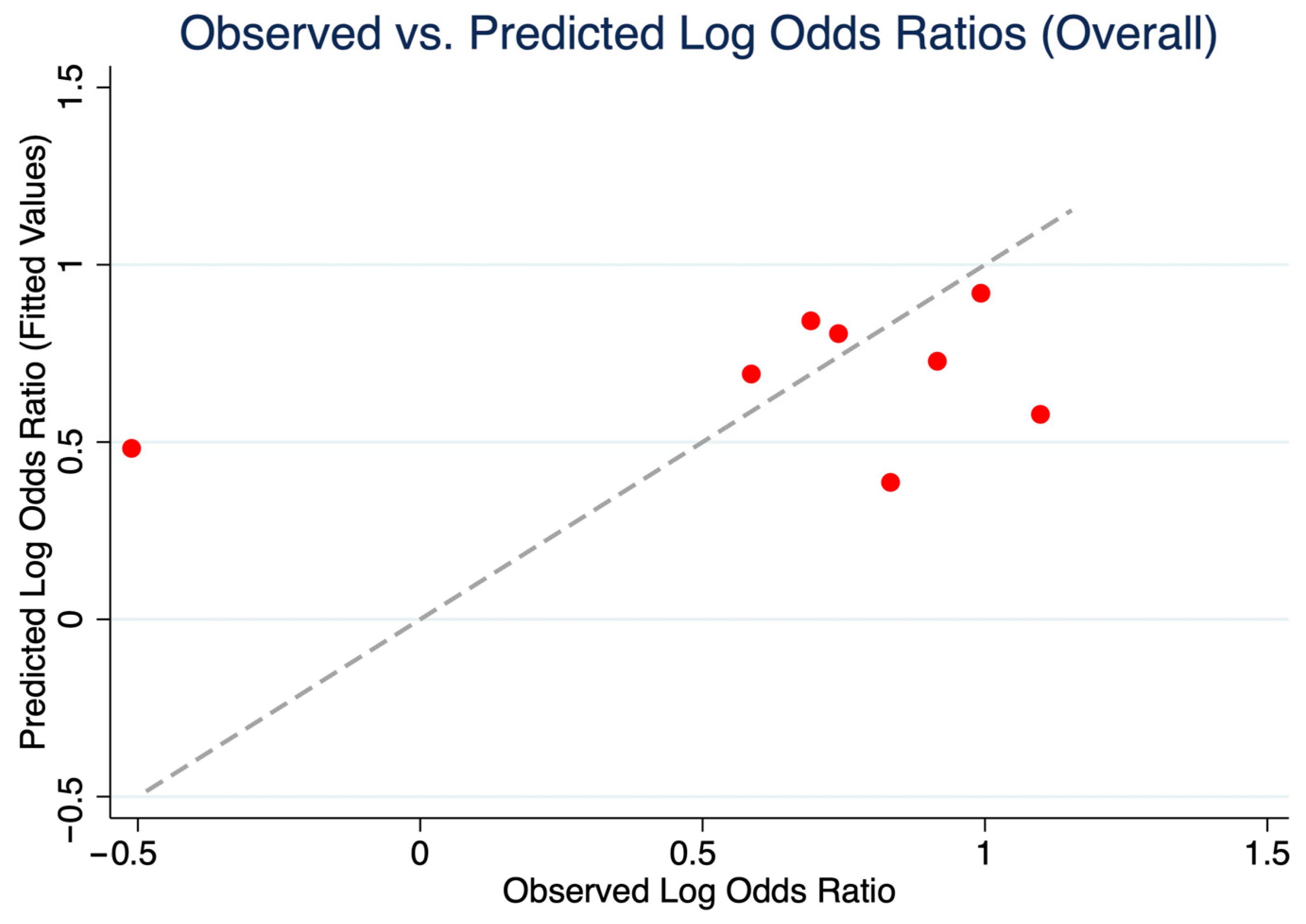 | Odds Ratio (OR) for Study Effect | −0.08 | 0.02 | 0.001 | −0.09 | [−0.14, −0.02] |