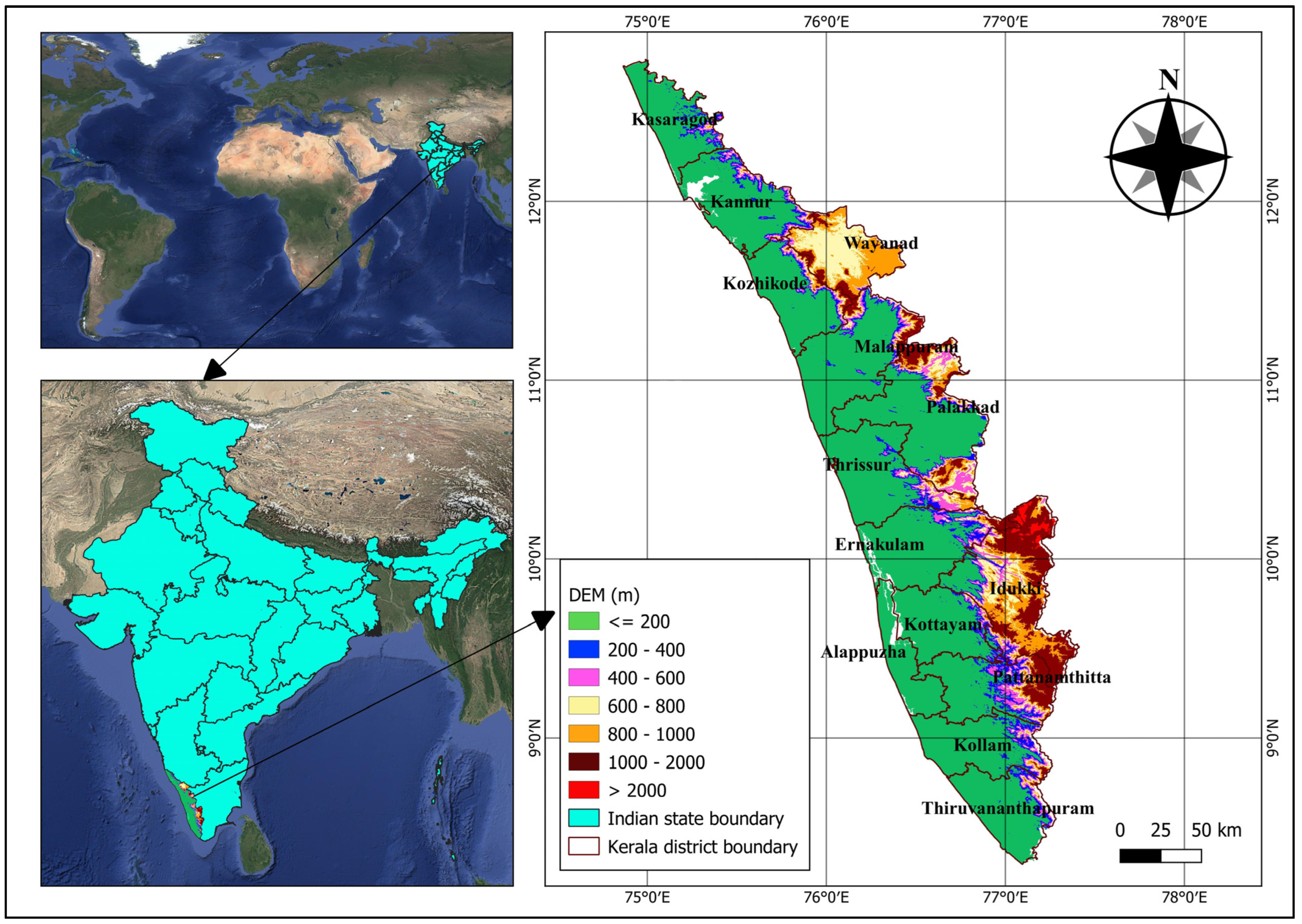 - Kerala State Disaster Management Authority. Event Report on “Extreme Rainfall Over Kerala”; Kerala State Disaster Management Authority: Thiruvananthapuram, India, 2022. [Google Scholar]