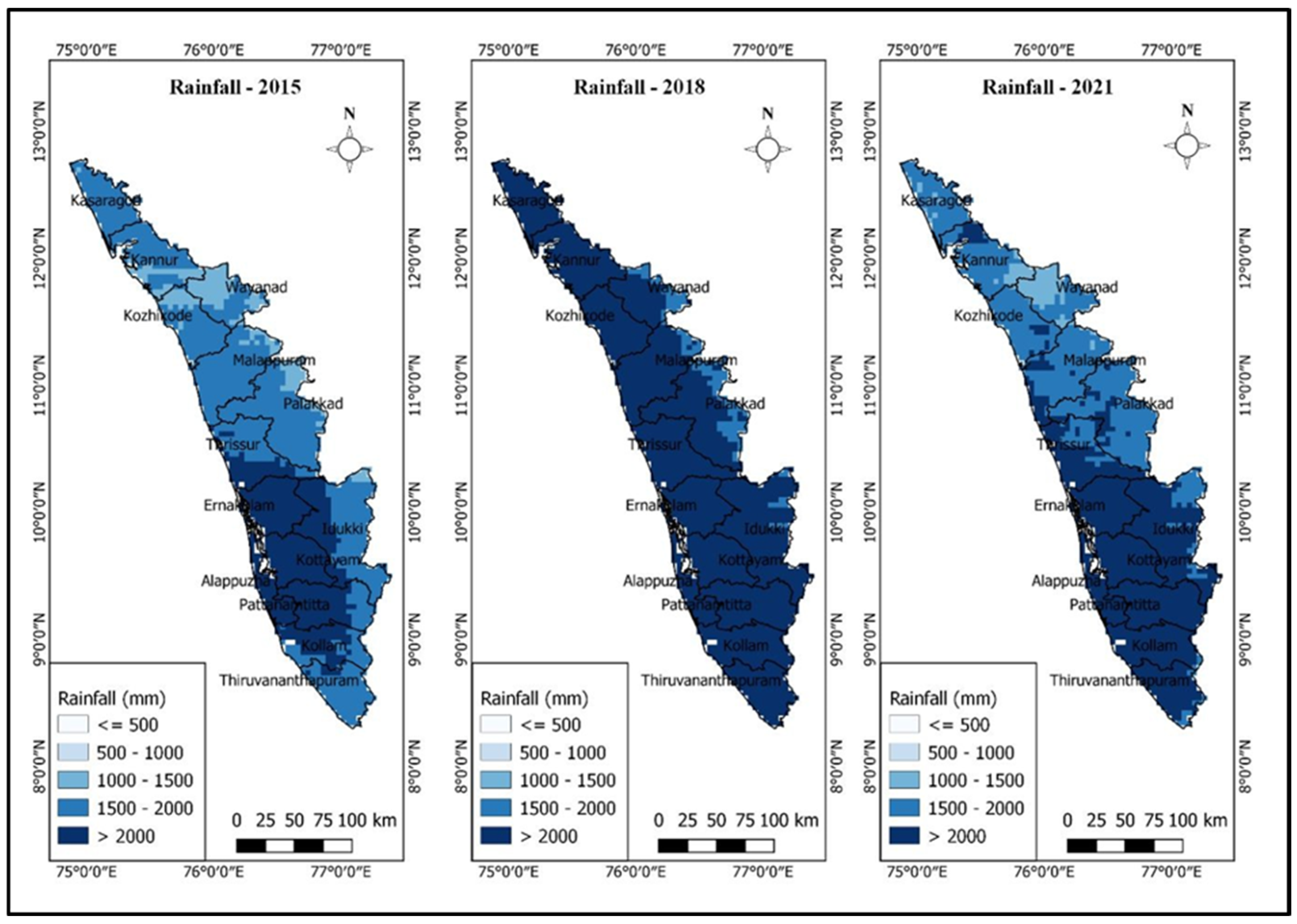 3.4. Precipitation Trends in Kerala