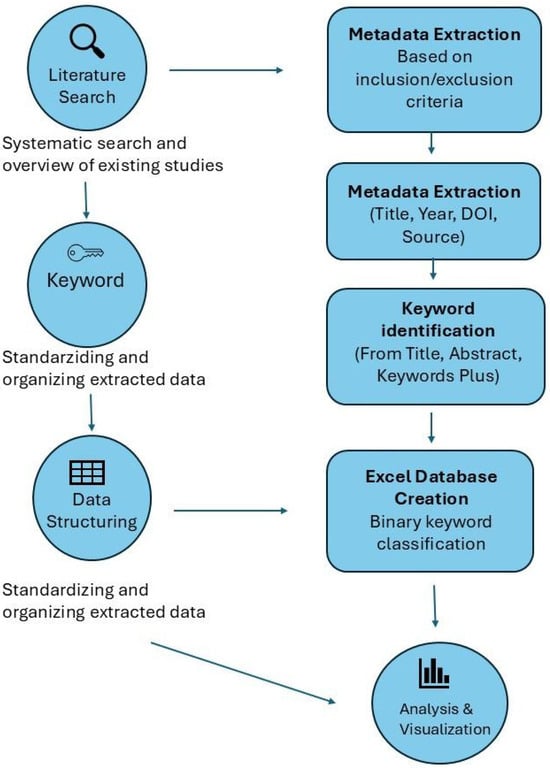 The concept of this article is based on an analysis of studies conducted between 15 January 2010 and 15 January 2025, which were retrieved from the Web of Science database. However, the review, which is not fully compliant with PRISMA standards, uses an individual systematic approach tailored to the scope and objectives of the study. Using tools such as semantic analysis and Latent Dirichlet Allocation (LDA) modeling, the authors have gained a comprehensive understanding of what is happening in cross-border environmental cooperation in Europe through a very detailed review of the literature. The method used combines the best features of social science methods with quantitative methods, revealing the interrelationships, characteristics, and connections present in the selected literature collection (Figure 1).