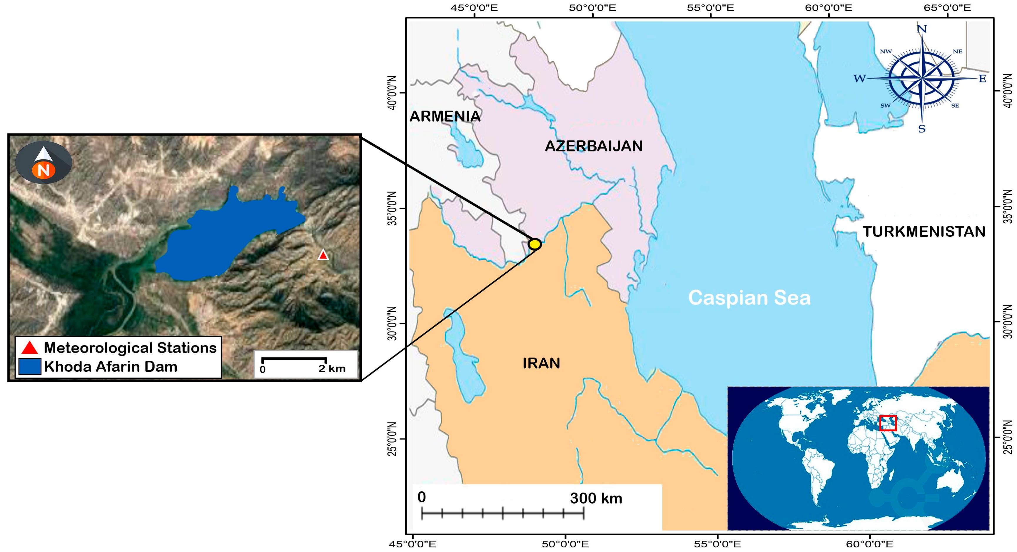 The meteorological data used in this study, including precipitation and evaporation, were obtained from ground observation stations operated by the East Azerbaijan Water Organization in Iran. The station is located in Khoda Afarin County, Qiz Qale Si region. The data were recorded with daily temporal resolution and aggregated into monthly values to align with the purpose of inflow forecasting.