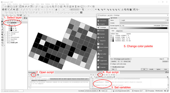 On GitHub, a Readme file containing the usage instructions is also available. Here, I will summarize how the script works in few points and with an image (Figure 3). Before running this script, as well as before applying any classification methods, the user must know his/her purpose and the distribution of the dataset that he/she aims to classify and visualize. For this latter aim, plotting a histogram of the dataset is enough. A simple spreadsheet or the use of statistical software (like R) are valid alternatives, although QGIS provides useful tools as well. For instance, the Histogram tab in Layer Properties–Symbology–Graduated Symbol quickly produces a clear histogram, ready to be interpreted. Once the shape of the data distribution (normal, uniform, skewed, etc.) is established, and we know what we want to visualize on our map, these are the following steps: