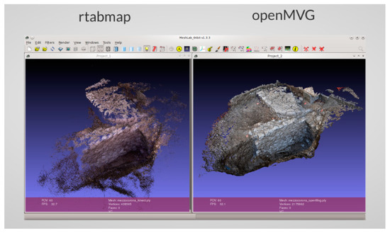 Apart from that, the level of accuracy and precision that can be achieved remains a strong limitation of this technology (Figure 7) as it is still not comparable to the SfM–MVS techniques. Moreover, SLAM is affected by a drift error: over time, the estimated motion starts deviating from the true motion. This is probably the main limitation of SLAM technologies, even if, in general, most software applications try to correct this issue with loop closure detection techniques. In other words, within ROS, a SLAM node can understand if the current 3D scene (location) has been previously recorded (visited) and, if so, it corrects the whole 3D model. However, despite these problems, the SLAM technique remains a valid option for real-time 3D in archaeology. Indeed, these limitations should be evaluated in relation to the archaeological tolerance of a project and, in many cases, a less precise and accurate 3D model could be acceptable if obtained under specific conditions, such as short-time acquisition, safety in the workplace, wide AoI (area of interest), etc. Precisely this kind of conditions is very important in professional archaeology.