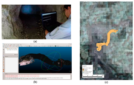 In the first case, SLAM-based devices can be used to quickly perform 3D documentation of small and medium-sized underground environments, particularly in the projects characterized by a high concentration of this kind of structures in a relatively small AoI. This situation was faced during a project of modern conflict archaeology aimed to 3D document and map evidence related to the Great War in the territory of Lake Garda [24]. Again, the adopted solution to document a high number of tunnels was the use of a Zed stereo camera and RtabMap (Figure 8). This strategy reduced the time spent underground, increasing work safety.