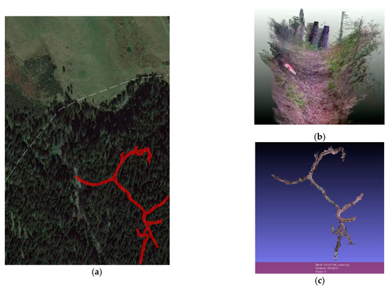 In the second case, mountain archaeology projects often have to deal with large territories covered by dense forests, at least under the treeline. In order to document minor archaeological evidence (with high tolerance), a SLAM system can be used to reduce the “scattering error” which affects GPS devices in such landscapes. For instance, Arc-Team used this technology to 3D document and map the traces left by several WWI trenches and some more ancient territorial boundaries in the woods between the Autonomous Province of Bozen/Bolzano and the Province of Belluno. The strategy presented two main advantages. On the one hand, the whole documentation was completed in just few hours of work; on the other hand, the problem of disturbed satellite signals was solved by placing some GCPs in the nearest clearing with the GPS, allowing the total station to enter the dense forest maintaining a geolocated link. In this case, without the possibility to use loop closure detection (due to the grass and dead leaves which cover the archaeological evidence), the drift error was controlled and reduced by dividing the documentation into small parts, around 10 m long, geolocated with the total station and some GCPs (Figure 9).