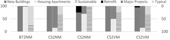 The total work involvement of the selected stakeholders during their work time period is presented in Figure 2. Table 1 presents the key messages extrapolated from the five interviews for each phase. The five participants are associated with the following codes: (i) BT2NM, builder working on typical apartment buildings in NSW metropolitan area; (ii) CS2NM and CS2NM, consultants working on sustainable apartment buildings in the metropolitan area of NSW; and (iii) CS2VM and CS2VM, consultants working on sustainable apartment buildings in the metropolitan area of Victoria.