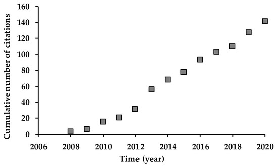The reports retrieved were published in journals specialized in the scientific fields of Agricultural engineering, Agronomy, Biochemistry and molecular biology, Applied chemistry, Entomology, Food science and technology, Forestry and Physiology. These reports were cited 147 times by a total of 138 works, with an average of 36.75 citations per report. The cumulative number of citations has increased steadily, suggesting a growing research interest in this subject (Figure 1).