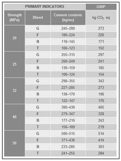 Ready-mix concrete key grouping properties for EPD.