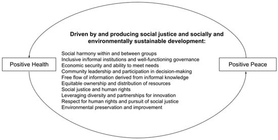 28]. This area of research does not comment on how building positive health (including its diverse features) may contribute to positive peace, and, likewise, how positive peace (including its diverse features) may in turn build positive health beyond the absence of disease/injury/bodily harm, without disability as a detriment (see