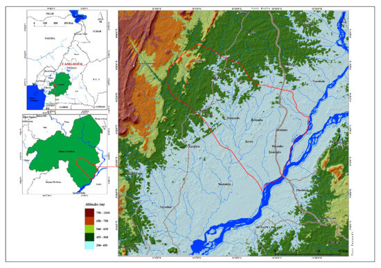 The study area was located in the Bokito district, Center region of Cameroon, with latitudes between 4°20′ and 4°40′ N and longitudes between 11°00′ and 11°20′ E (Figure 1).