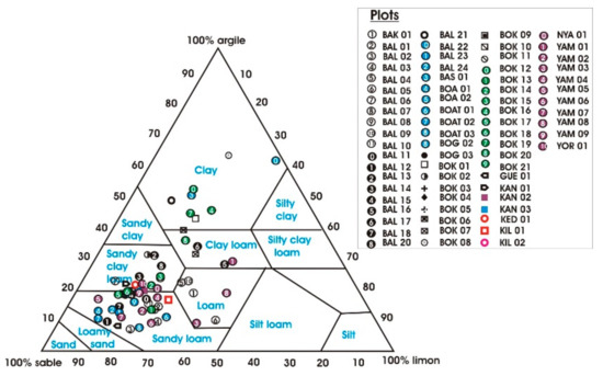 - Nguemezi, C.; Tematio, P.; Yemefack, M.; Tsozue, D.; Silatsa, T.B. Soil quality and soil fertility status in major soil groups at the Tombel area, South-West Cameroon. Heliyon 2020, 6, e3432. [Google Scholar] [CrossRef] [PubMed] [Green Version]