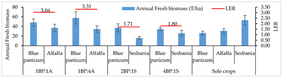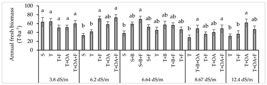 Integrated Agronomic Practices to Enhance Forage Productivity and Quality of Blue Panicum (Panicum antidotale Retz.) under Saline and Arid Conditions in the South of Morocco †