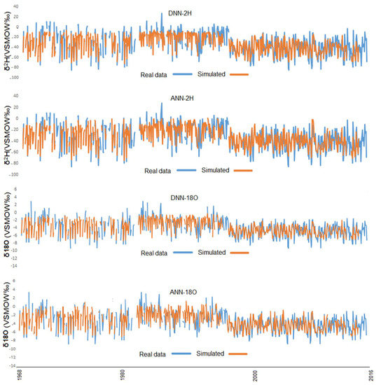 The comparison between the real and simulated stable isotopes data using the DNN and ANN models on Bangkok’s precipitation.