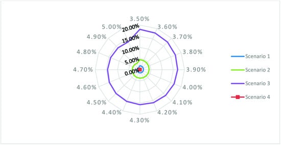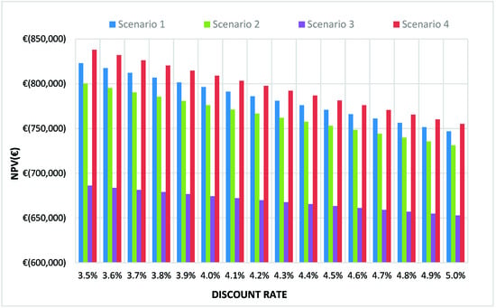 NPV for Scenarios 1, 2, 3 and 4 for different discount rates.