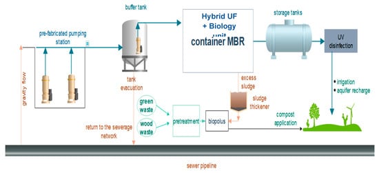 - Plevri, A.; Mamais, D.; Noutsopoulos, C.; Makropoulos, C.; Andreadakis, A.; Rippis, K.; Smelti, E. Promoting on-site urban wastewater reuse through MBR–RO treatment. Desalin. Water Treat. 2016, 156, 14–16. [Google Scholar] [CrossRef]