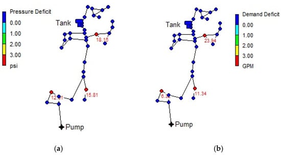 PDA: pressure-deficient scenario: (a) pressure deficit; (b) demand deficit.