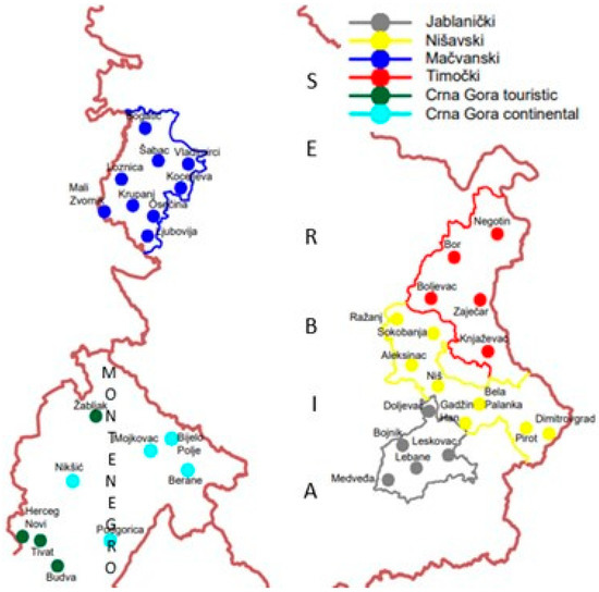 The study area covering Montenegro (10 WSS) and 4 regions with 27 WSSs (in total) in Serbia is shown in Figure 1.