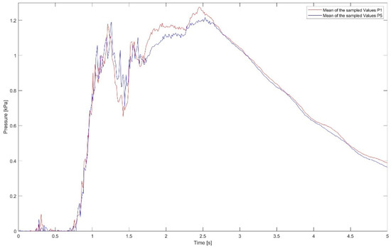 Comparison between the mean sampled values of the transducers P1 and P5.