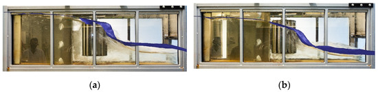 In addition, the profiles of the free surface of the experimental and the numerical model were compared (Figure 12). The high similarity between both confirms the analytical results.