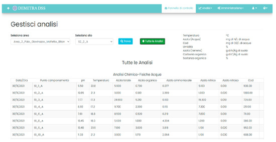 Moreover, through the access to the F-DSS service, all the farms involved in monitoring activities in the various areas, were supported by the simplification of the management of the documentation required by the PAN (company register, Agronomic Use Plan—PUA, periodic communications, etc.), allowing for certification and ‘real-time’ connectivity with the competent authorities, and access to the territorial database for verifying the state of the waters.