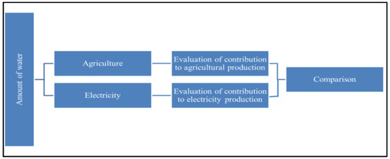 This research is based on evaluating a certain amount of water contribution to the agricultural yield or to the electricity production with assumption that one amount of water is used alternatively. Figure 1 illustrates the approach utilized in this research.