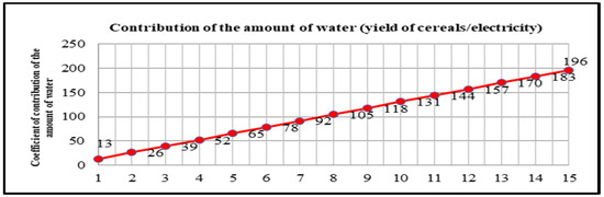 The amount of water used for agricultural production certainly contributes to the increase of yield but it can not be determined precisely. Respecting this fact, we calculated the contribution in the span of 1% to 15% of assumed average cereal yield per hectare as follows:
