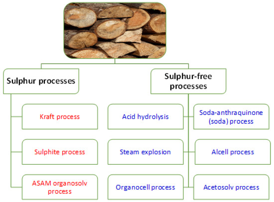 - Alcell® process: This method involves the use of ethanol and solvent pulping;